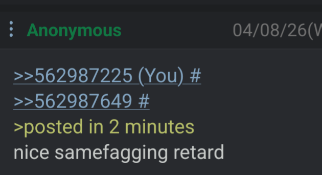 >>562987225>>562987649>posted in 2 minutesnice samefagging retard