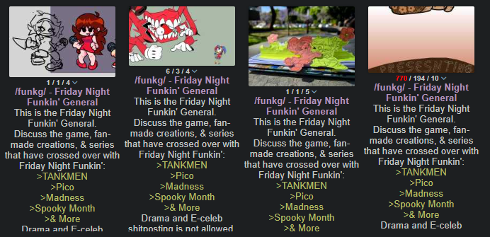 quick recap 3>5th anniversary of /funkg/>og earlyfags return>catholic easter also happens>really though, where are the x-men mods?>basegame leak discussion>vs /v/ discussion>page n dumping my waifu>discussion regarding the recent "she was 17 scott" meme>teafag is back>doner kebab is seemingly delayed>speedz and tsuraran thingy>reminiscing of the good ol times>discussion about kendrick lamar and some creepy fag>ritz>screenshot of soft mod's creator finding out that lean is a drug>discussion about exeshit and d-sides>grace roblox drama>drawfag reqs>komsmatik can go suck dicks idc about him>drawpile>more pico stuff>mural archives>well well well>femanon who's not even related to this general gets first ever fanart of her fursona, or at least an interpretation of one>discussion about coffin game>tadc in theaters>faggotry happens>apparently, someone "died" from epilepsy while playing a dogshit roblox asym, then it was revealed that "victim's" "friend" lied about her death>i seriously cannot stand pendrivefag>dead air fan kino>epicface>week 8 bro leak which may or may not be real>wait since when does vep draw oviposition porn>beef between a baldi modder and some corpsefucking fag which i'm sure happened like a week ago or two>the redditification of edmund's games>somebody tried to jerk vyxi off but failed>st4r hate outside of this general, a miracle come true>neil collins predicting fnf 4 years before the game came out>5 day thread>wait why did the previous one have 830 replies before it closed>fake nostalgia ng asym concept>wtf do you mean speed gets an anime