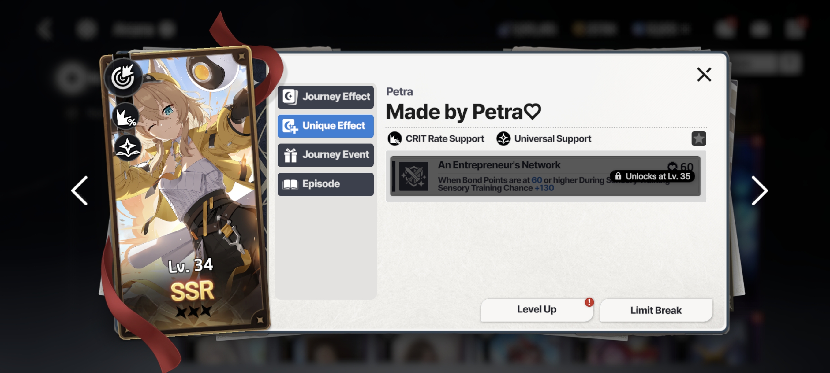 >>562450628Level your Resonance with the character to at least level 8 as the preparation for the Journey. You can reset your other characters and see if you can get a single character to 160 and if you can't then wait until you can for comfy and easy runs.Get good parents from normal journeys. You want to run parents with stats you need or want on that character so you can start with a real stat line and don't need to play catch up or rely on luck to clear. Ideally the parents should be characters that make journey easier such as Emily or Waltz since first you want to be able to actually clear the journey consistently before minmaxing stats or skills.Take four arcanas of the stat you want to level. Waltz and Emily should run with 4 HP arcanas for example while DPS should be running with 4 Strength Arcanas. Bullet has more optimized arcana setups but running 4 arcanas of the stat you want to level makes being able to hit it much easier.Use the databasehttps://kanohban.github.io/StarSaviorArcanaDB/journeyIt's much easier when you can actually plan your choices and events over picking stuff blindly.Prioritize bond early on, you want to level your bond with your arcanas. You want to mainly do Strength, Endurance and Vitality training. You never want to do the other 3 unless it's some extreme scenario where there's 3 arcanas in there that you can bond up with.Pray and hope for Super Sensory Training (Rainbows) (That gold glow on the icon) on the stat you actually want so you can get juiced up and be able to keep up with the necessary ranks. Buy stat foods from the shop too, you should be buying purple/gold stat foods and stamina items on sight.The final advice is don't be afraid to reset if you get fucked by RNG which will happen sometimes since we're currently at the bare min resonance when KR is at 10 with the characters they use.