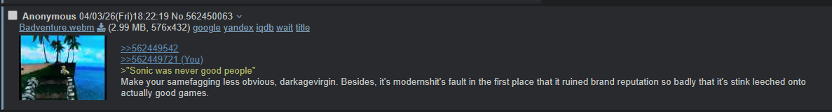 >>562464080>>562464218>remember when sonic was good? yeah we do too :^)