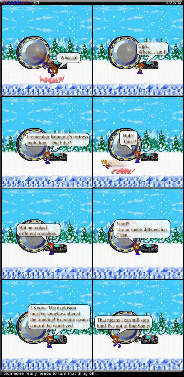 >SatAM Nicole was Sally's childhood friend who was digitized by Eggman and trapped in a PDA.>Nicole would've went back to being flesh and blood as either a 6 year old or a 16 year old.>if 6, she would've been adopted by Sally>if 16, Sonicole