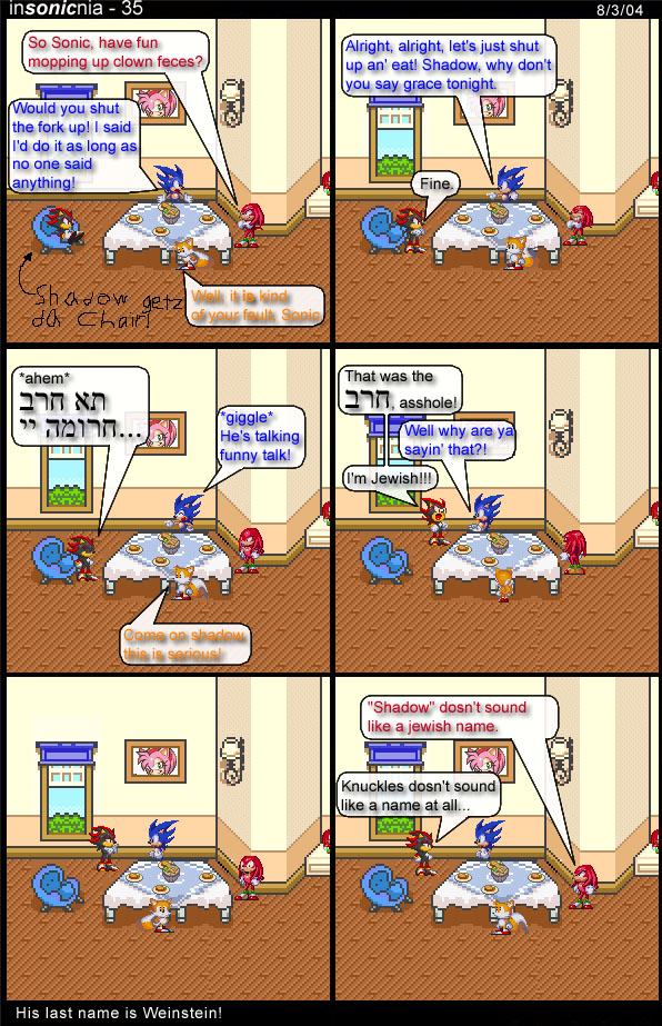 >>562464657Of all the things to cherrypick. This seems like the tamest.His victory salute in CW is higher and the Robotniks very closely resemble jewish caricatures. Not to mention Shadow's color scheme is 1 to 1 with the Nazi party's.