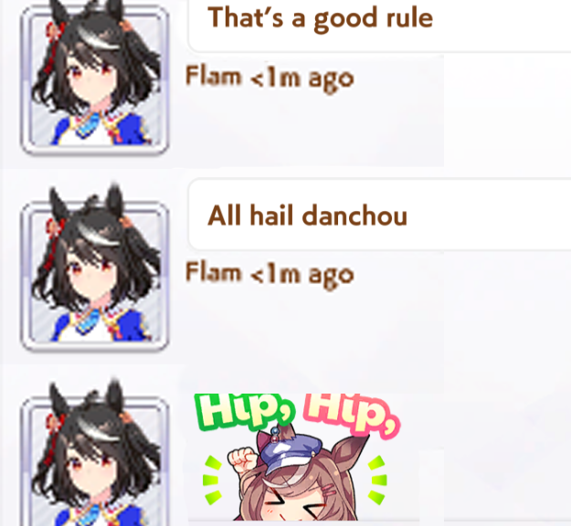 Congratulations to Dacchis. Despite successfully staying away from dramas, and could have had a better reputation as the "soul" oshigaming club. You have instead damaged your reputation by joining with 2 members, and 3 umas overall.Great job. I don't know how you managed to fuck it up this bad.