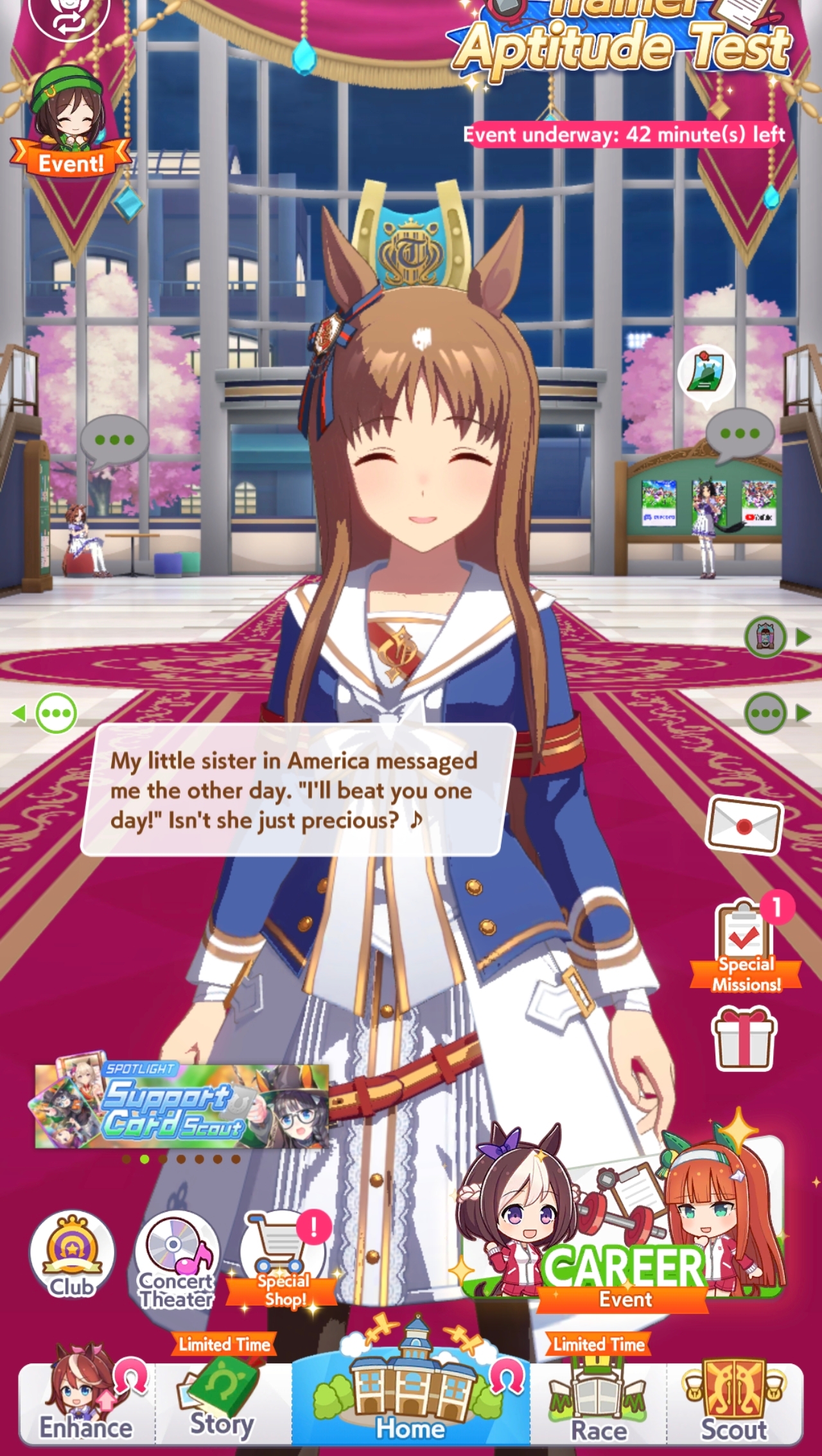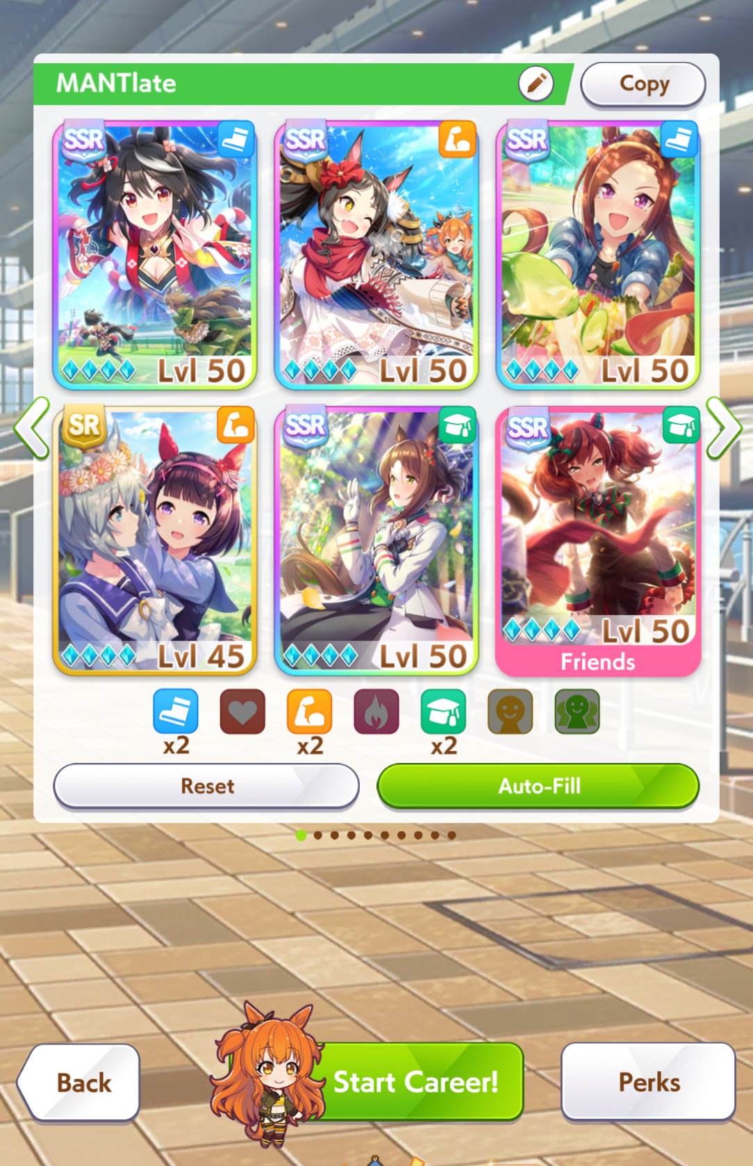 ButtSweat, a casual B+ /uma/ club, is recruiting! Gee whillikers.The usual "try to play" requirement stands; if you're flatlining for a reason, just let us know in advance that you're travelling or whatnot, all good.We talk in-game! Some of us (not me) are good at the game and even give advice! What a joyously cooperative environment. There is also talk of butts and such, at times. Naturally.If interested, reply with your user ID or apply in-game with /uma/ in your profile!