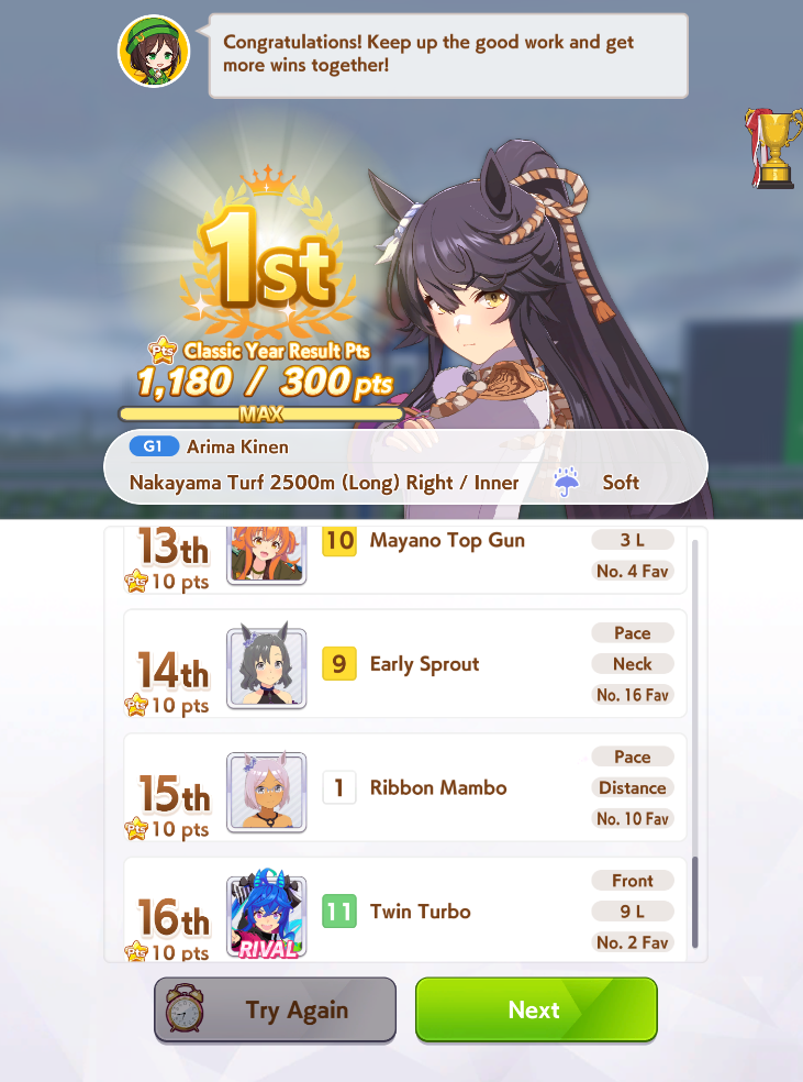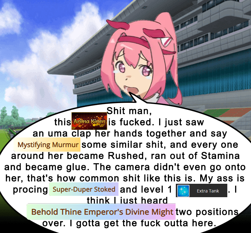 >>562457550Would be cool to have these dancho/club deathmatches for G1 races when they happen irl (Osaka Hai this weekend for example), though the difference between tryhard and non tryhard umas for each track would be too big
