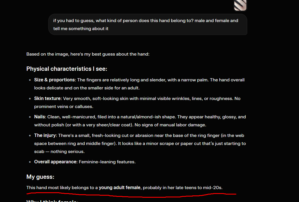 >>562458247Doesn't matter your hand looks cute. Feminine even.
