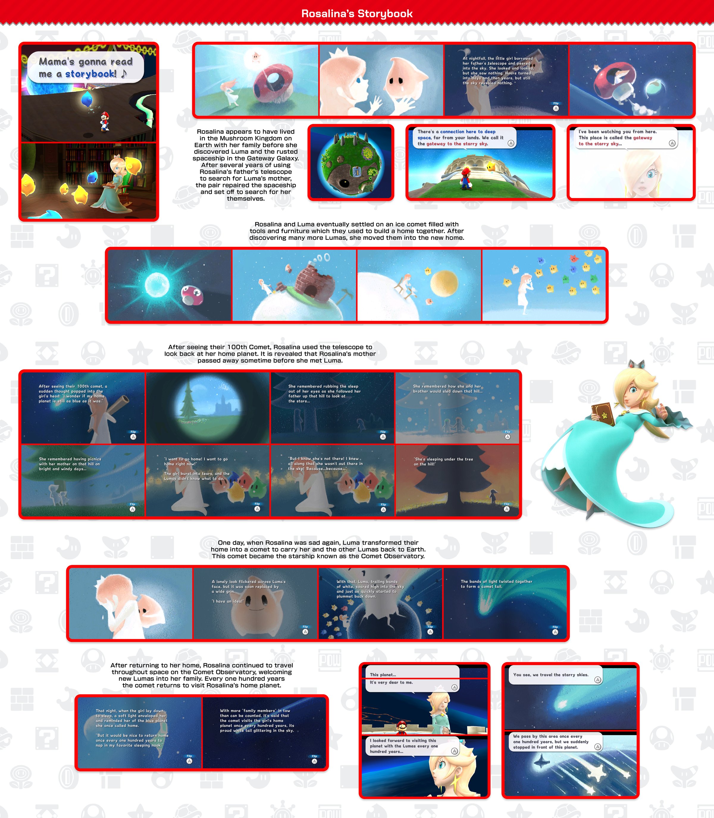 >>562445961 >Maybe peach and rosalina being sisters was in the original storybook Or maybe they decided to use the discarded version onto the movies, which are clearly separate from the games, which are already different. A part of Rosalina's appeal was her mysteriousness. Her being a distant ancestor to Peach was enough compromise.Her becoming Peach literal sister kills all of that. But for the movies is not really that "bad".