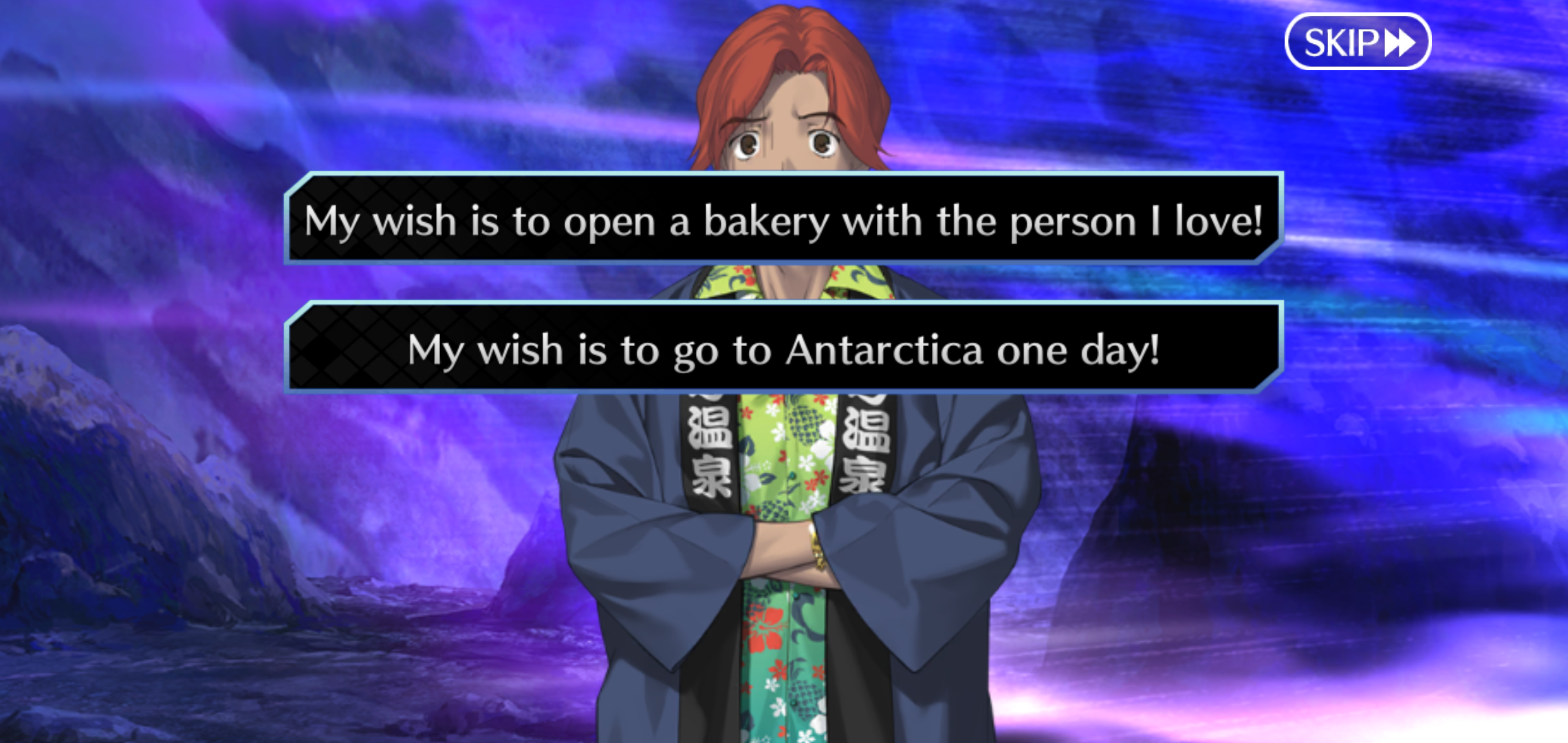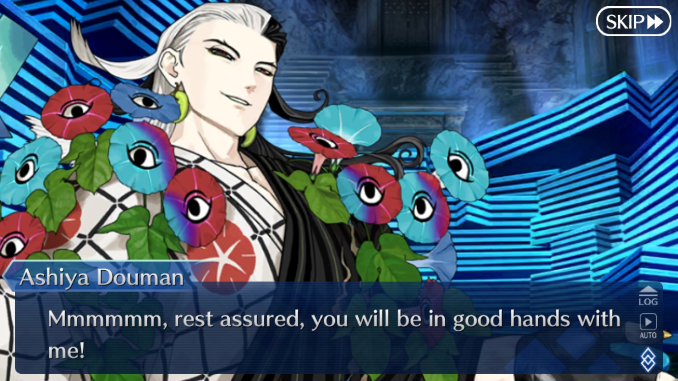 >There's something bothering me, Master. This artist, Katsushika Hokusai, who keeps following me around... She always keeps a certain distance while she grinds ink... In the morning, at night...when I'm at the cafeteria, at the bath, and even when I'm in the toi...ahem...Are there Servants other than Hokusai who like to watch others when they use the toilet?