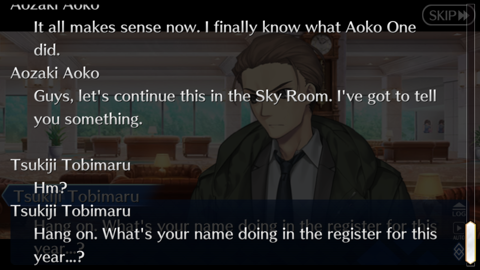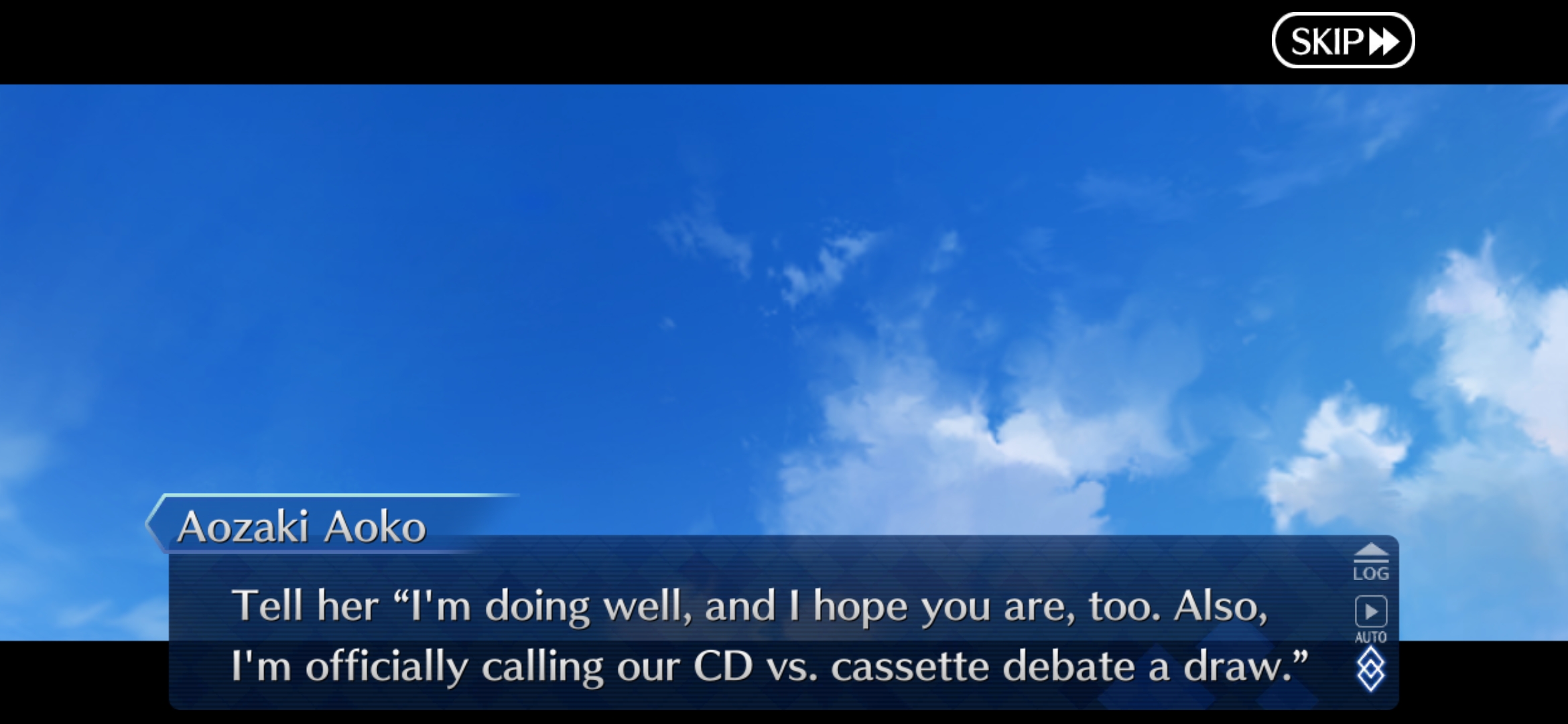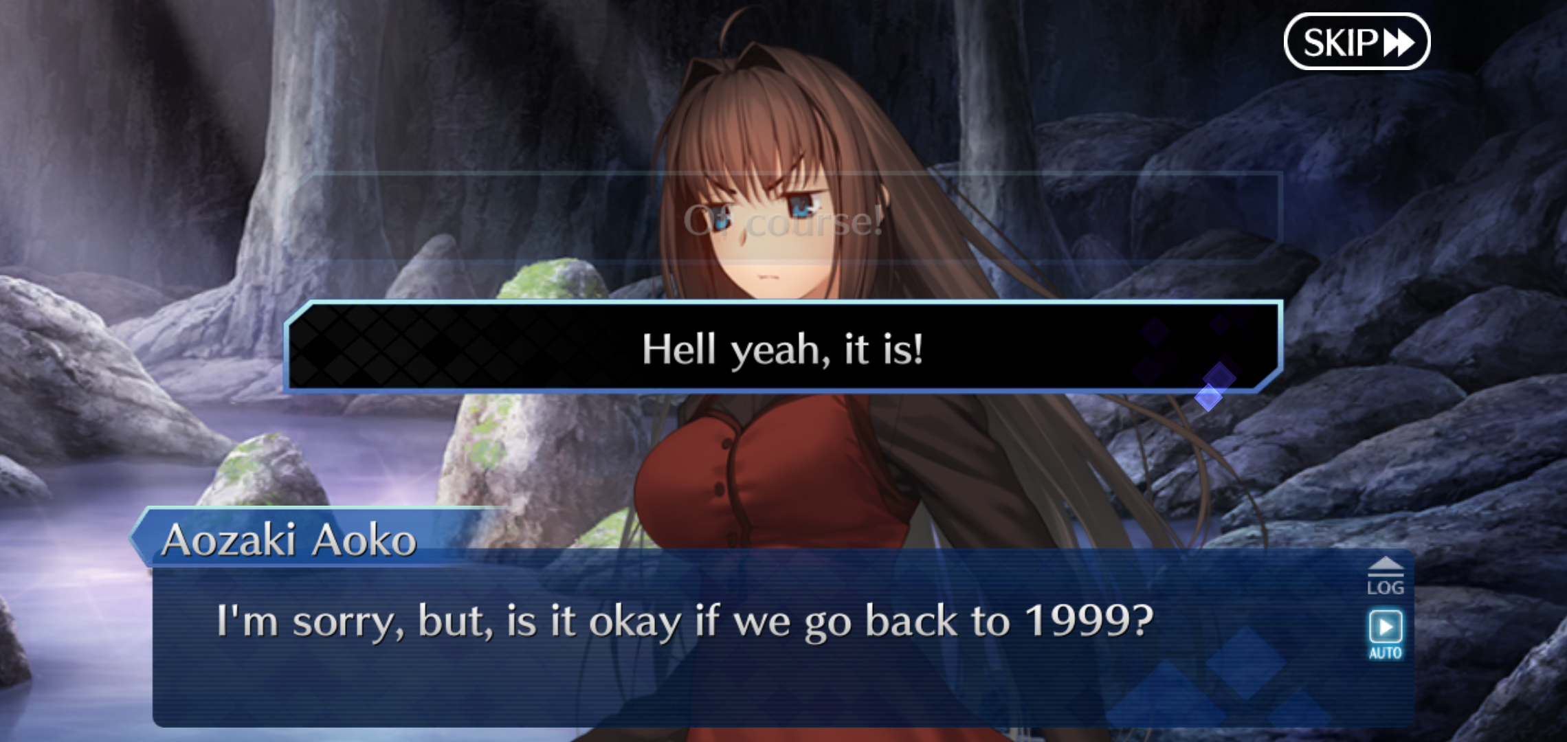 Just started the event properly. Why is Aoko so nice all of a sudden? She was in perma bitch mode in Mahoyo.