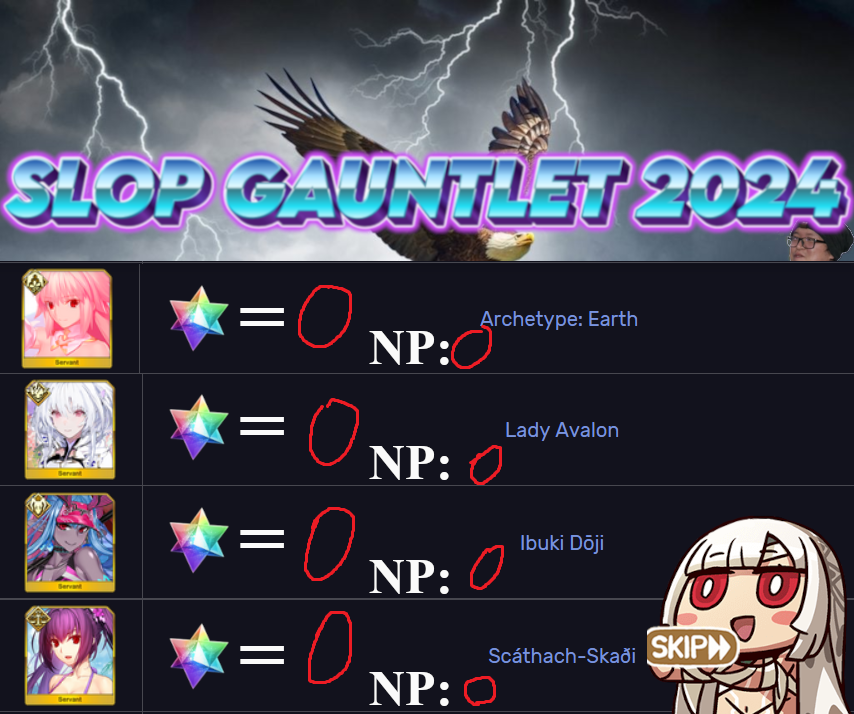 >>562480225If your Quick Servant doesn't loop with 3 Skadis, you are doing something wrong.