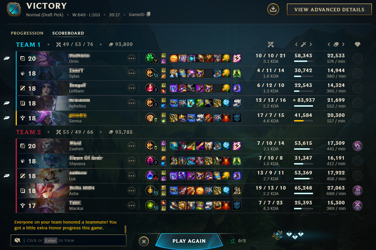 >>562460645I'm not complaining, I still like playing Support though...I've been thinking about picking up Ekko recently, but I also found a new Senna build that I'm going to beat to death for the next few days !