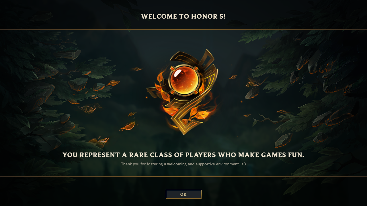 >come out suspension a day ago for leaving too many games>get honor 5I guess you can be considered a good teammate as long as you don't type