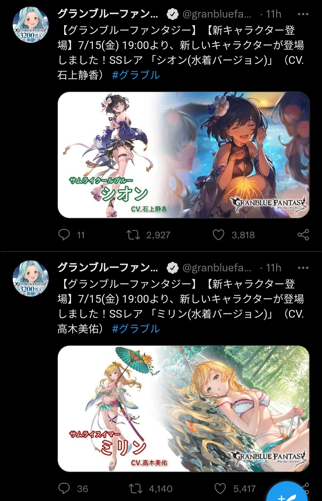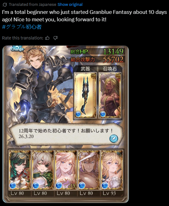 Y. Alliah (Water) and S. Anthuria (Light) now available>Steam Client Releasedsteam.granbluefantasy.com>Roadmap- https://gbf.wiki/User:Umikin/Timeline>April Koregra- https://granbluefantasy.com/ja/news/9674/>April Schedule4/1 April Fool's4/6 Water Advantage GW4/14 ROTB Update4/17 ...and you. added to Side Stories4/23 New MSQ Chapters & Fylkis4/23 Light/Dark Taboo raids>Future Schedule5/15 - FMA Collab6/? - Illustrious FLB & Transcendence7/? - Wizard Origin>Granblue Relink: Endless Ragnarok - 7/9Latest Info>https://www.youtube.com/watch?v=NaKBXO0HHa4Maggie/Bea/Eustace/Gallanza playable>How to StartGo to https://game.granbluefantasy.jp in any Chromium-based browser>READ THE FAQ before posting - It will answer most of your questions if you're new or learninghttps://gbf.wiki/FAQ>Helpful links - These links contain useful information like important guides and other stuffGranblue Fantasy Toolbox - https://mizagbf.github.io/GBF Advanced Search - https://gbfas.ioGBF Grid and Teambuilding - https://gbfguide.comMain Story Transcript - https://calico.nekoweb.org/gbf/story/Wiki Advanced Grids - https://gbf.wiki/Advanced_Grids/gbfg/ Mega Pastebin - https://pastebin.com/xHkyQTy8/gbfg/ Crew Directory - https://rentry.org/gbfgcrewsPrevious: >>562331814