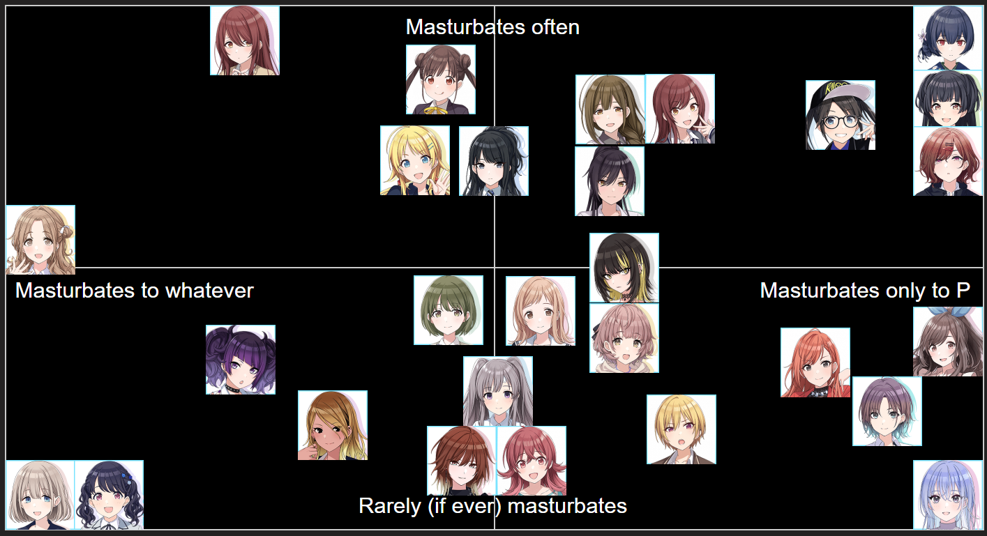>>562475453Replaced 'masturbate to P' to 'masturbate to his idol' and then place yourself on this chart