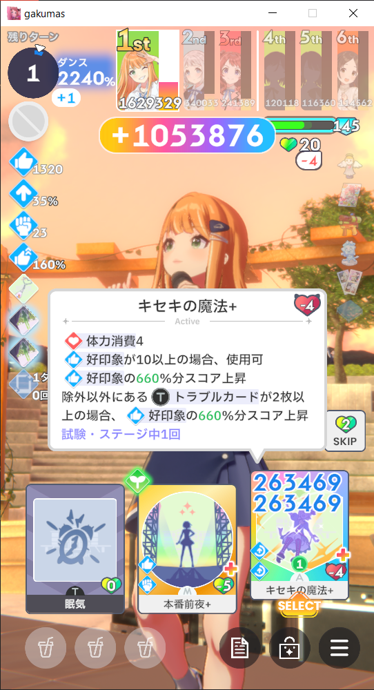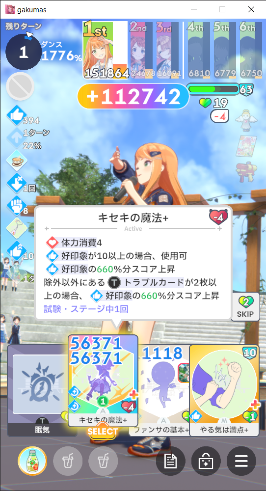 >>562474584She's like MiteMao but reversied... Find a way to boost your Concentration gain so you can convert them into Good Condition after.