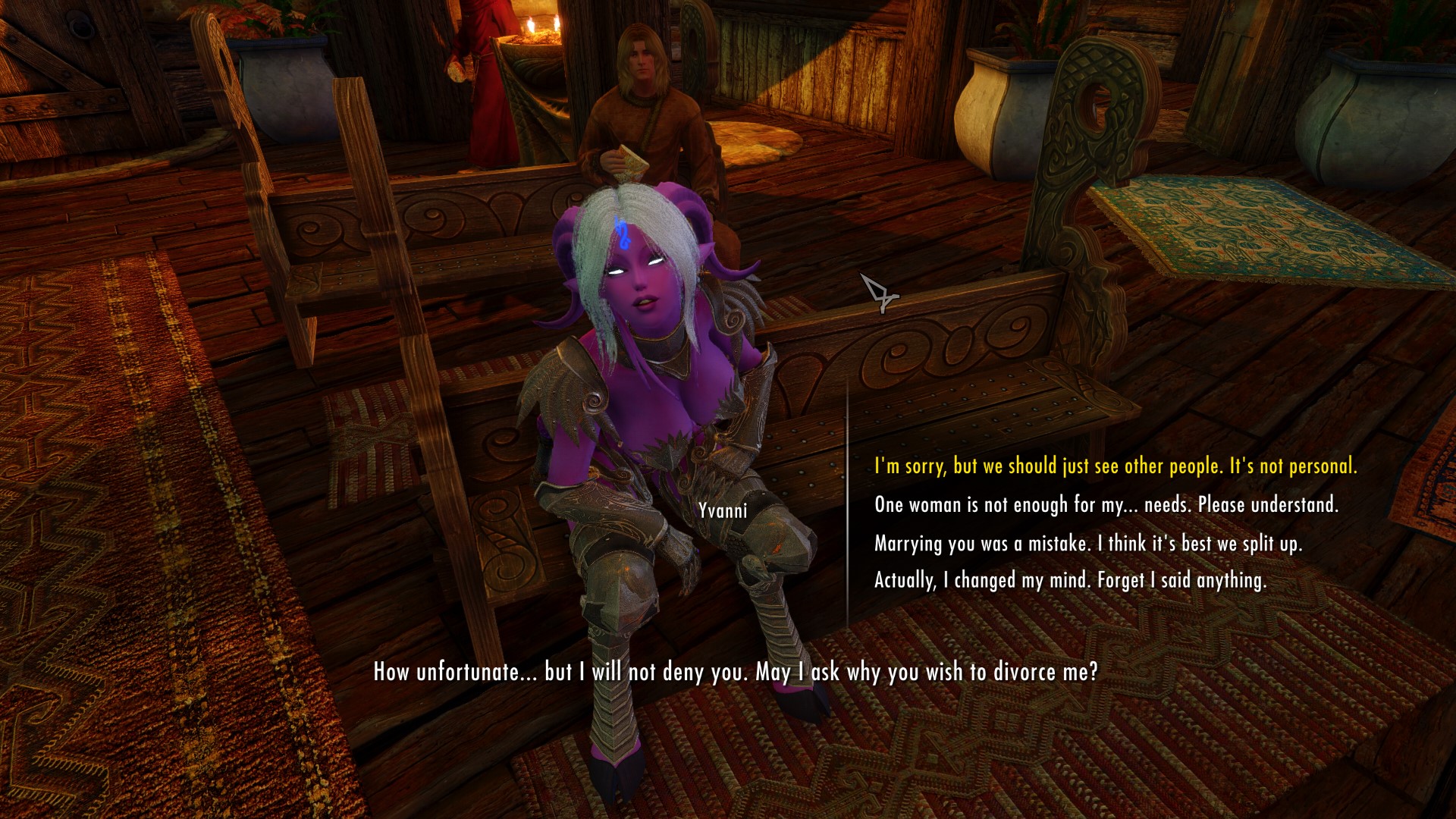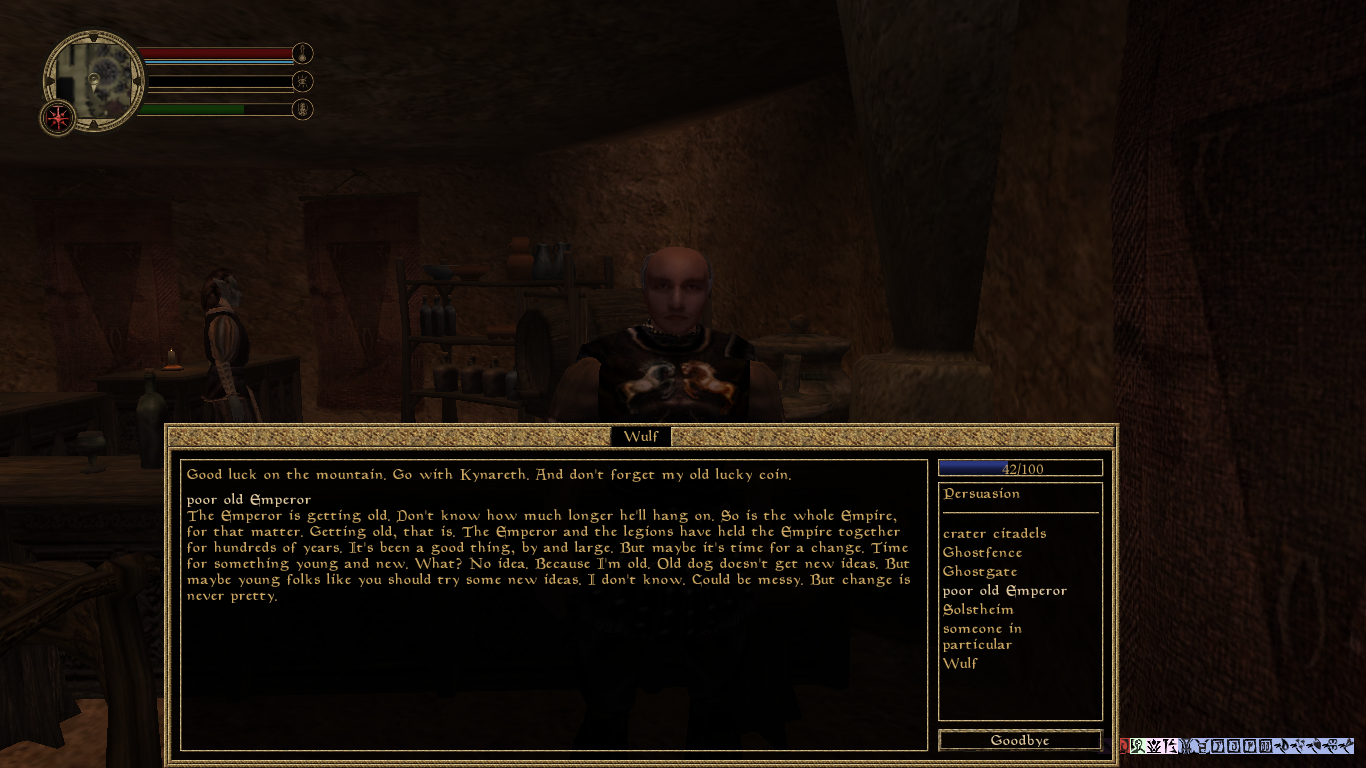 >>562496675A lot of the ones that talk to each other. Remi, Xelzaz, Auri. Then there was Squelch, Dagoth and Morri. I think i'll keep the lizard and the plague girl. He interacts with two of the quest mods I have and also I find it mildly amusing that he actually hates me and says that i'm a terrible person when I ask him for his opinion. Morri is cool too, I'm planning on going full peryite worshipper anyway