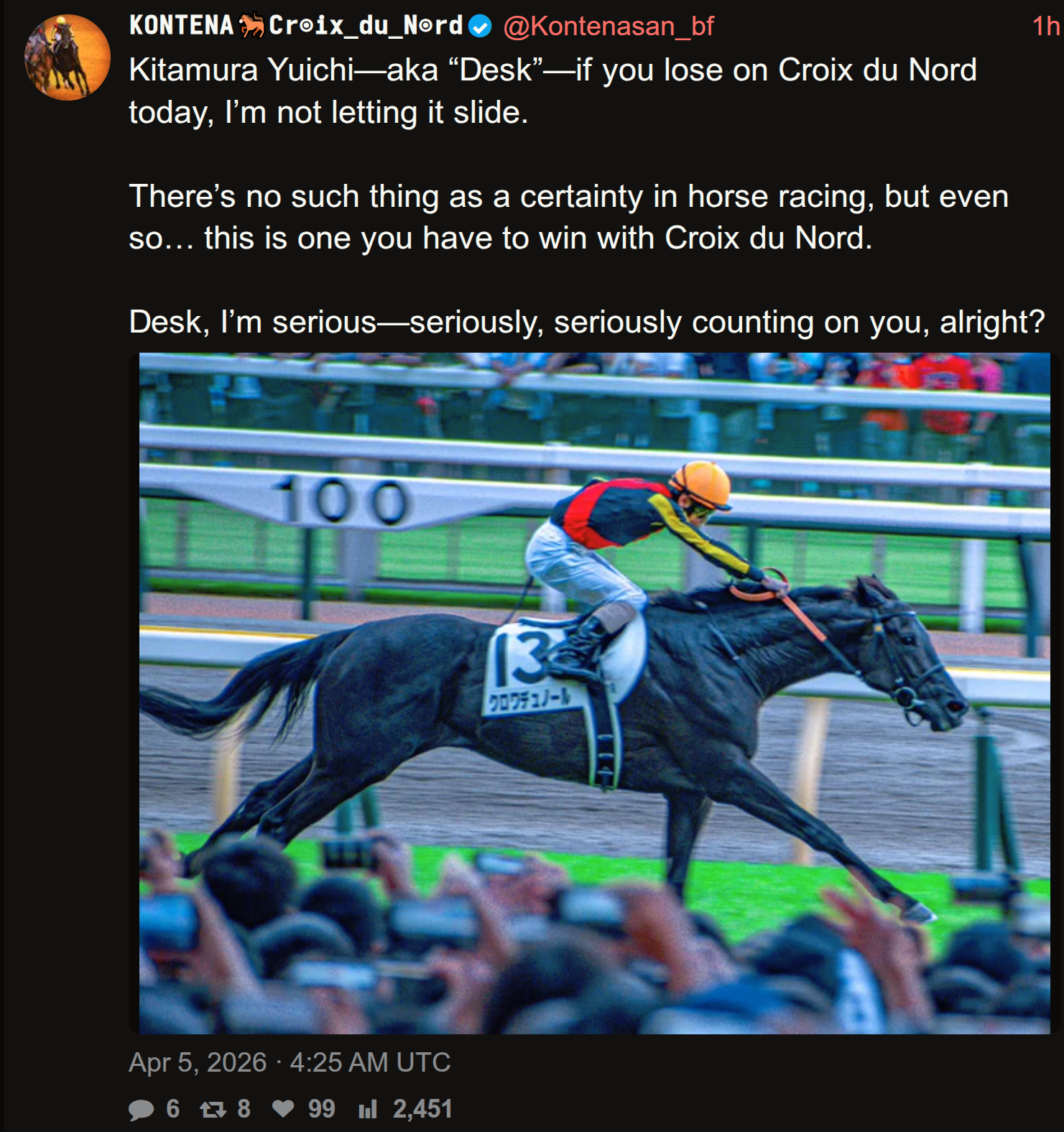 https://x.com/JRA_Special/status/2040623834555089148Another Sakai x Fujita combo break his maiden