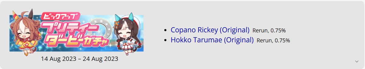 Previous: >>561936205>Game NewsCurrent Rate Up:Sakura Bakushin O (3* Alt), North Flight (3* Alt), Daring Tact (SSR), Daring Heart (SSR)Story event with Curren Bouquet'dor SSR currently underwayLegends' Race w/ Duramente & Narita Taishin (Steampunk) currently underwayMasters' Challenge currently underwayNew Awakening levels, starting with Special Week>Next Lvl 6-7 AwakeningsTokai Teio - MaySilence Suzuka - JulyCM Dirt will be held on 4/23, Del Mar, 2000m, left, good, spring, sunnyLoH Mile will be held in May, Kyoto, 1200m, right, springCM Classic will be held in June, Tokyo, 2400m, left, heavy, spring, cloudy, NO Debuffers>Beyond Dreams Guidehttps://docs.google.com/document/d/1ibD_nSFr923JtCxRS7GJikwY9csnMBkfRzsLnew5jvg/edit?usp=sharing>IP News>7th Event: WORLD TOURTokyo - 6/20-21https://ts7th.umamusume.jp/Travel Pop-Up Store:https://travelpopupstore.umamusume.jp/Coco's Collab:https://umamusume2026.cocos.jp/>Thread Circlesウマオオオオ (20 million/month), PUMA, ウマぴょいのまにまに (No quota)You must be E3 (20k points) to join a circle. Apply with /uma/ or /vg/ in your profile or post ID in the thread.>All Guides & Resourceshttps://rentry.org/uma26Find networks if your region is blocked from the game or clienthttps://www.umavpn.top/Seiyuu & Concertshttps://rentry.org/umst>/uma/ monies derbydacchi.gudnight.fyi>/uma/ POG (Paper Owners Game)Register here: >>524354428Season 3: https://pog.netkeiba.com/?pid=tool_group&group_id=102454Season 4: https://pog.netkeiba.com/?pid=tool_group&group_id=108301>Cygames WebStore allows you to buy jims on any devicehttps://webstore.cygames.com/umamusume/>How to link your Cygames IDhttps://support.cygames.com/faq/applink_umamusume