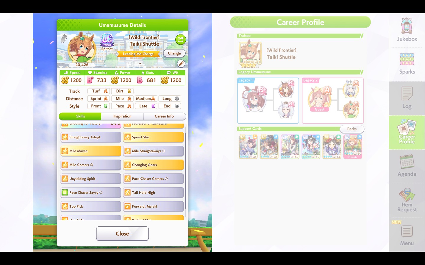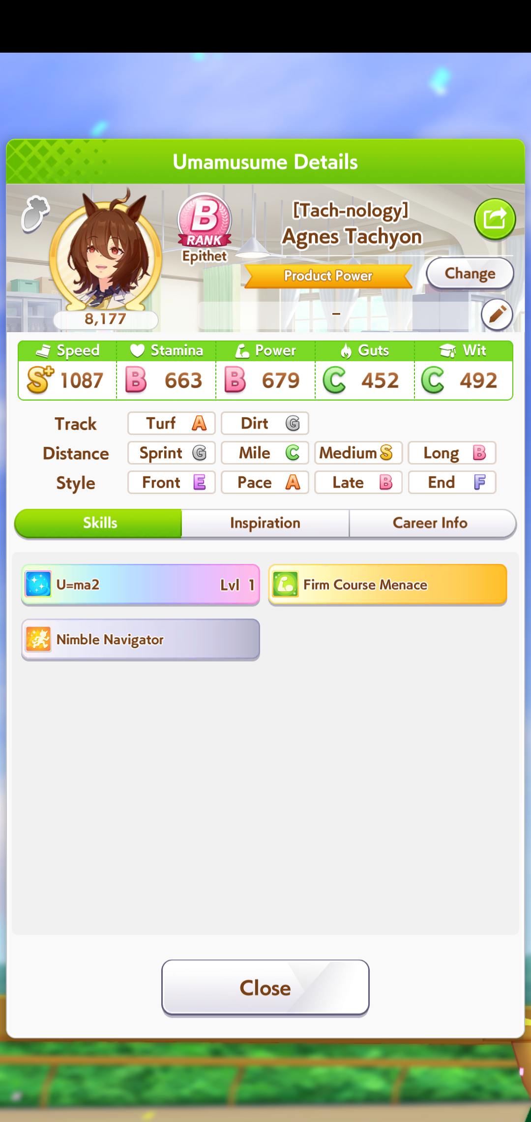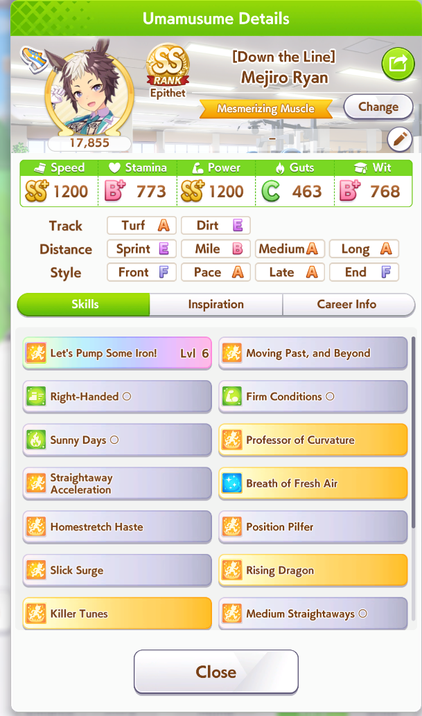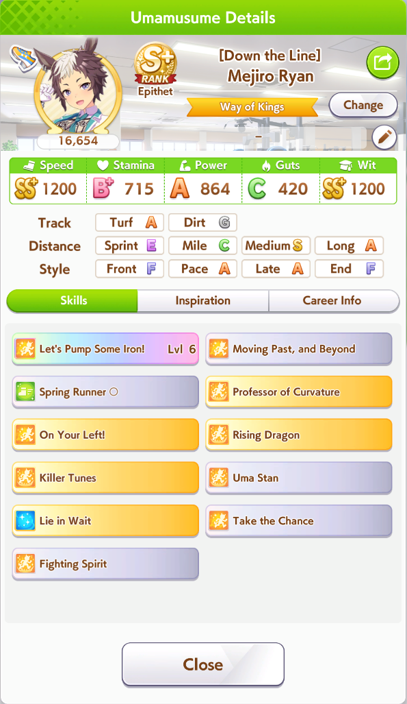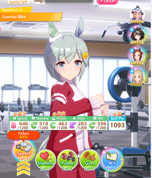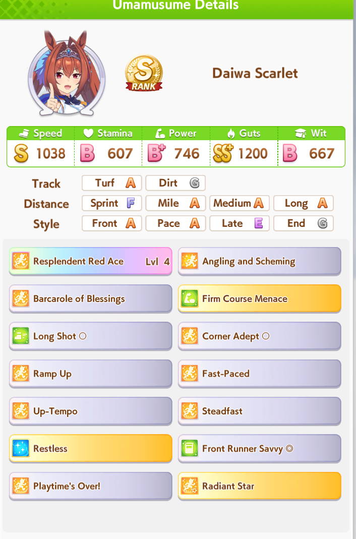 >>562513640Firm menace gives guaranteed 60 speed which can come in clutch when escaping X.Oguri. the main source of killer tunes is pow El but you can max pow without clicking pow