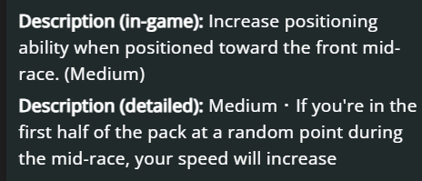 >>562507903Her unique effectively turns her into pace chaser late-race. A pace chaser with the acceleration and speed of an end closer