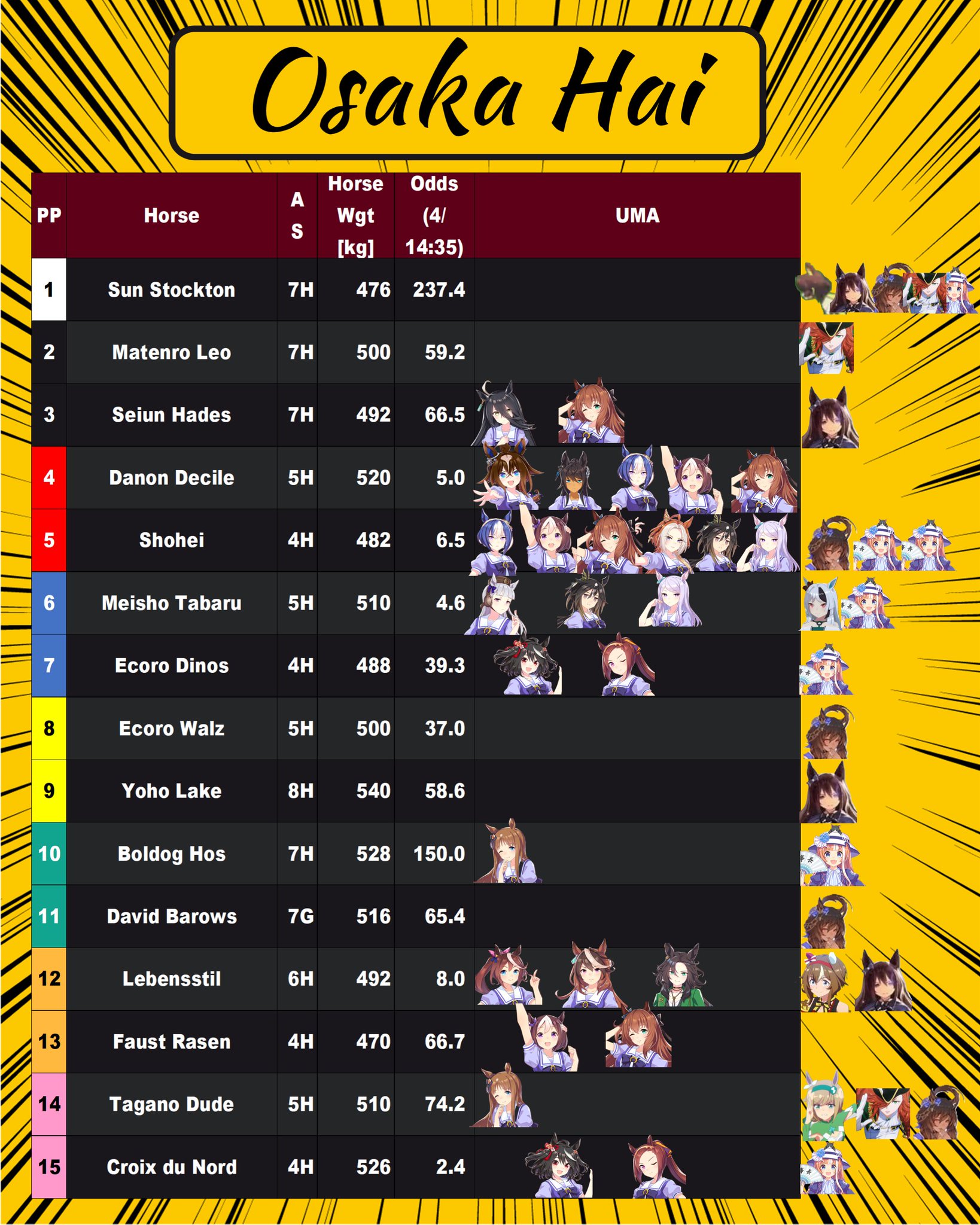 >>562508457I'd like to see Tabaru win, and a respectable performance from Seiun Hades knowing Nishiyama is watching from the hospital.