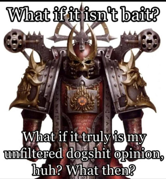>>562625695>IHfag wants to replace his legs with tank treads but can't do mathI'd say "many such cases" but thankfully Iron Hands don't have many fans.