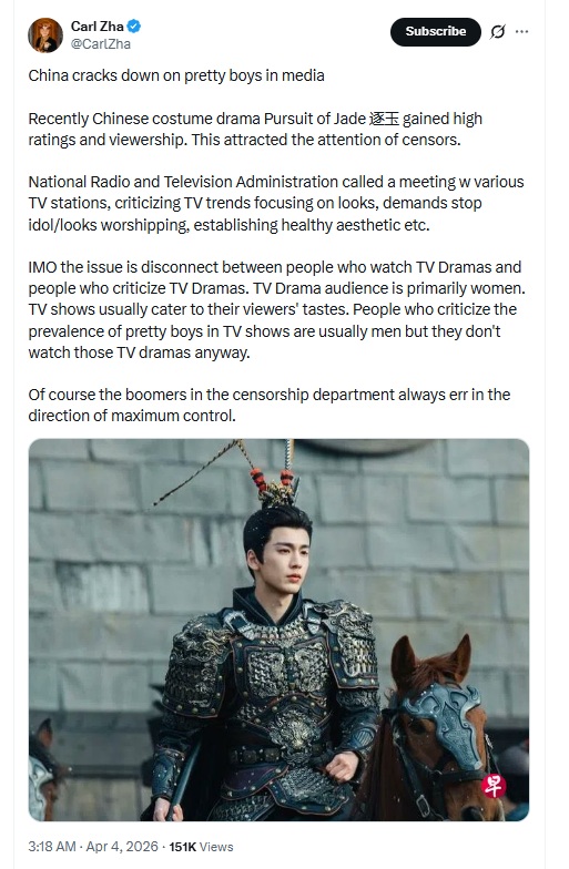 >>562516508Literally who cares? Either way, the CCP is retarded, nobody wants to see a drama/movie with ugly people, be it men or women.