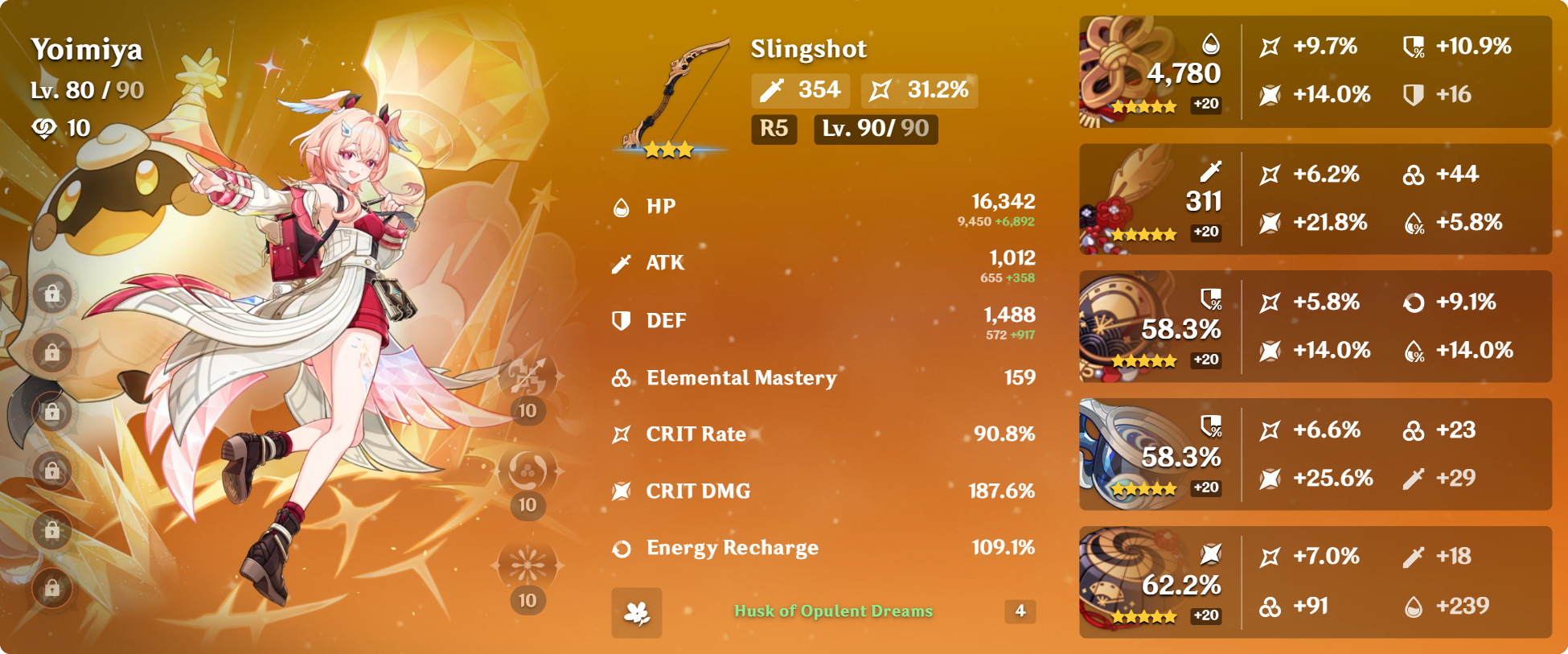 >>562517549They're both comparable so if you have a good set leftover from, say, Albedo you can just give it to her.