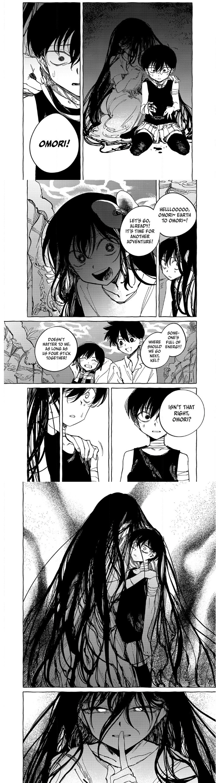 I originally thought these panels meant we'd get more of Sunny's thoughts during certain scenes, but it only happened this one time in the very first chapter when Aubrey told him Mari was dead. How odd.