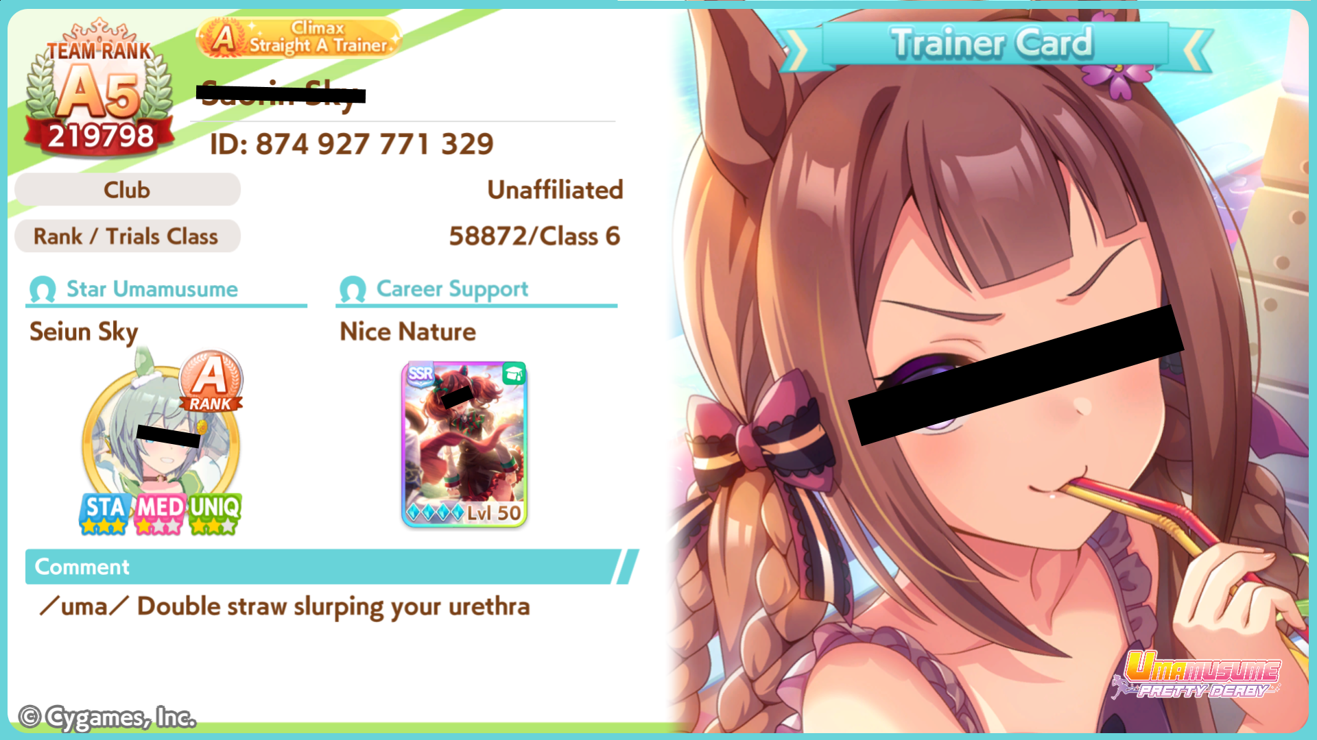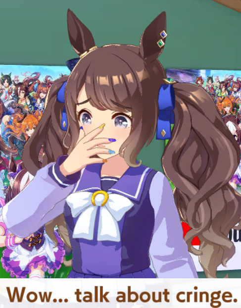 Looks familiar?Scenes like this are happening all over the umaverse right now. You. Could. Be. Next.That is, unless you make the most important decision of your life.PROVE to yourself that you have the strength AND the courage to keep your oshi clean without towels.Join the ButtSweat.BECOME part of the elite CM silver(at best) forceS33 3x0tic f1lt3r av01d m355ag35And spread umapyoi agenda through the umalaxyBecome a TrainerBecome a ShitposterBecome a ButtSweatapply with /uma/ in your profile