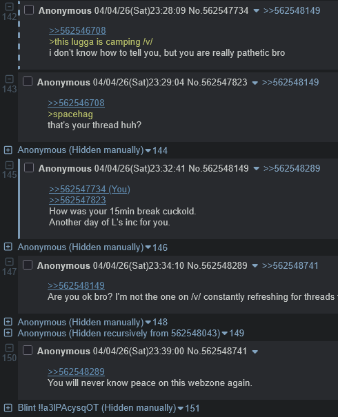 >>562542173This will all stop in 1-2 hours. EU hours in /wfg/ is mostly the general's schizo replying to himself for attention.