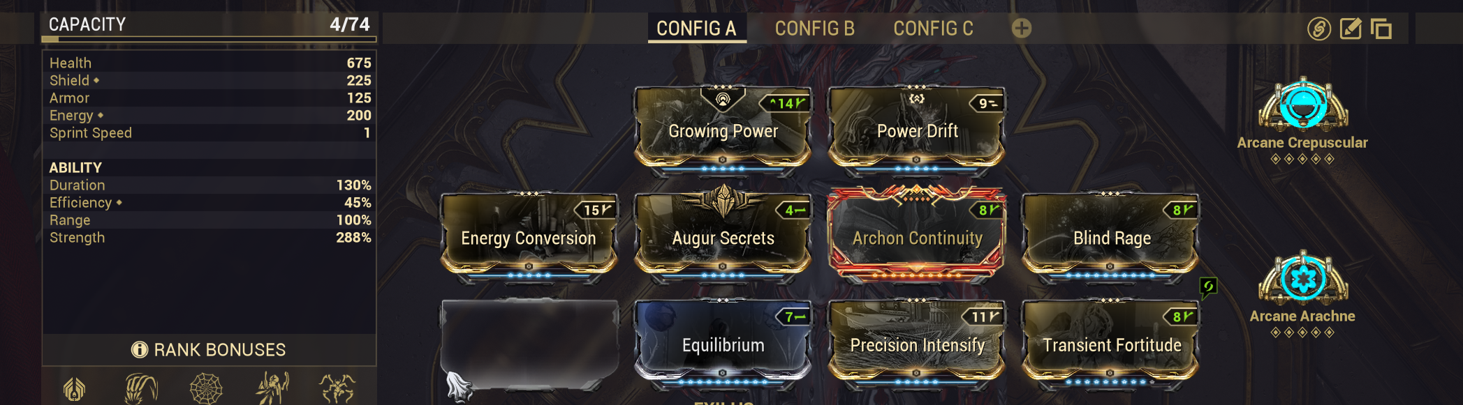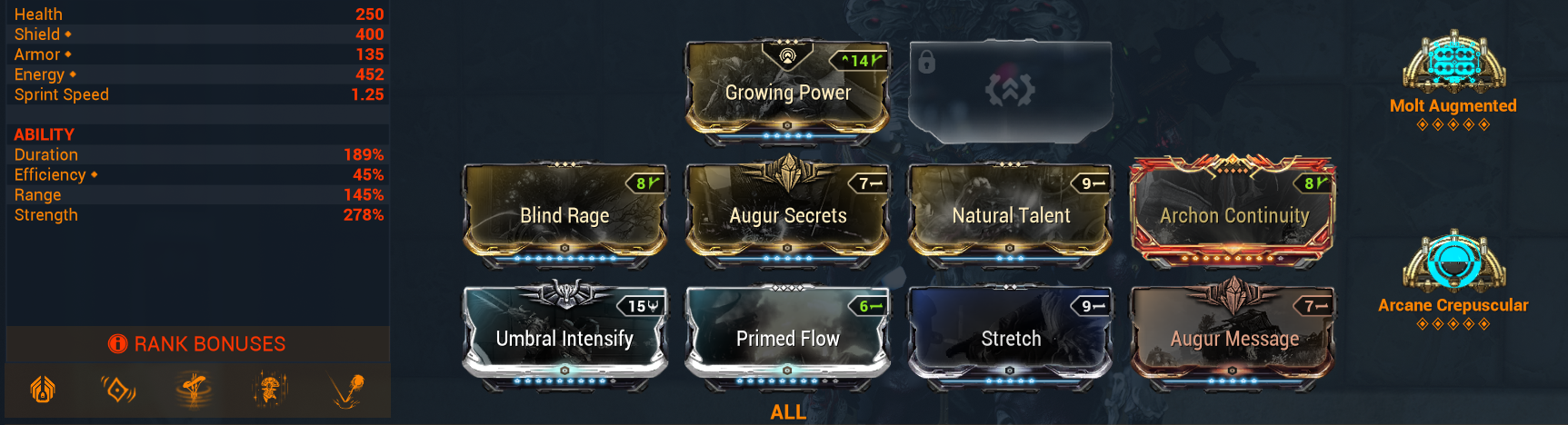 >>562537838I believe there should be some kind of inventive for not using Helminth, not sure what that would look like though. Maybe an extra arcane slot? That might be a bit too powerful though. Maybe just some extra base stat of your choosing (strength, range, duration, etc...)?