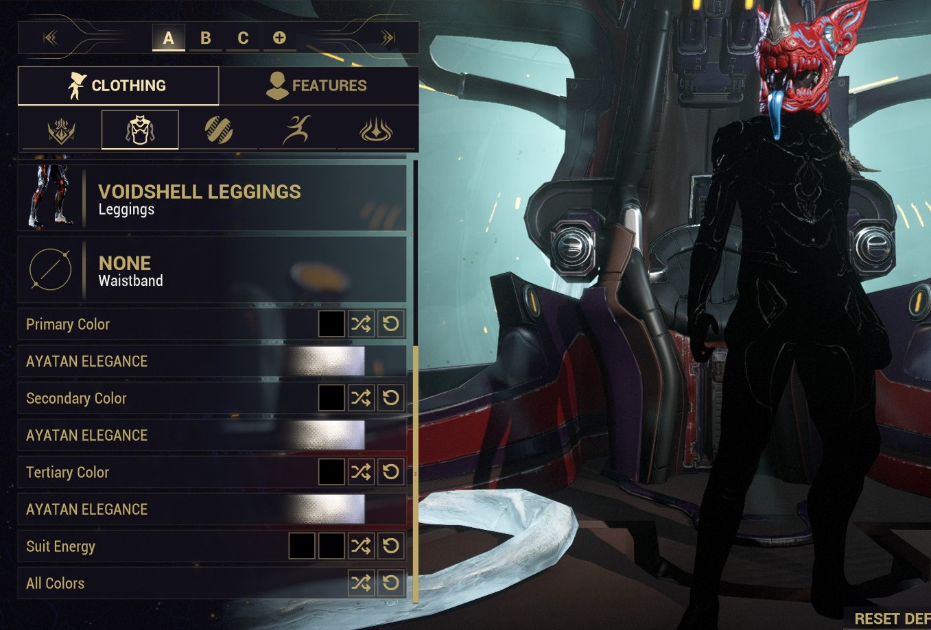 I'm using the black from Smoke but my Voidshell suit isn't like solid black like I want it idk what's messing with it