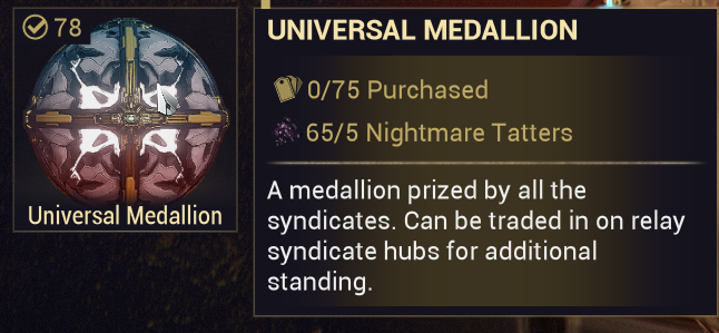 >>562614164There is exacly one syndicate that would make me consider spending Universal Medallions and it's the one which specifically does not allow them The CumCave