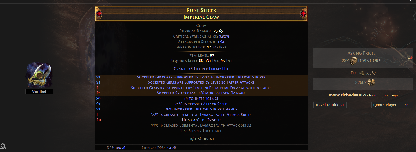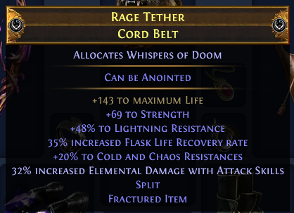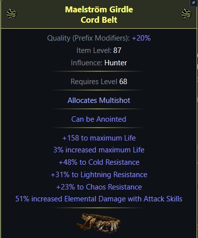 >>562553783>>562554223that anon's only half right 50 might be a bit too low-budget for ubers on ele hit but 500 is also way too muchonce you stretch the budget closer to 100 divs ubers are reasonable, get a massive belt and map until you can afford pic related + squire + a focused amulet with +2, crit multi, damage while leeching and that should already be enough to do ubers