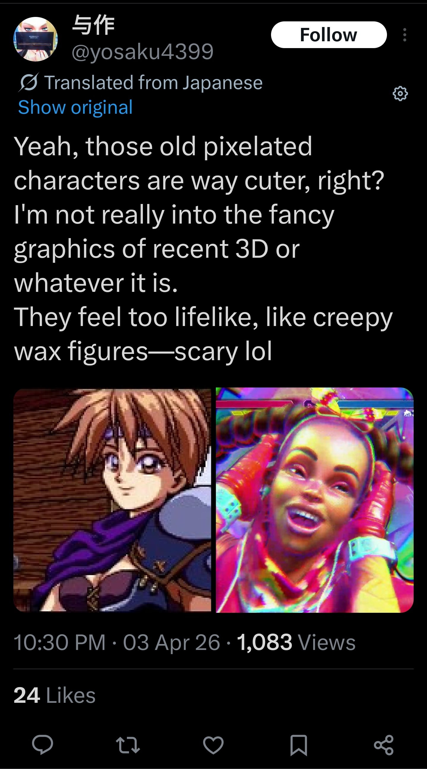 >>562558848I genuinely don’t know what people were expecting Ingrid to look like considering unlike a ton the SF6 roster she’s making the jump straight from 2D art to a 3D photorealistic model.
