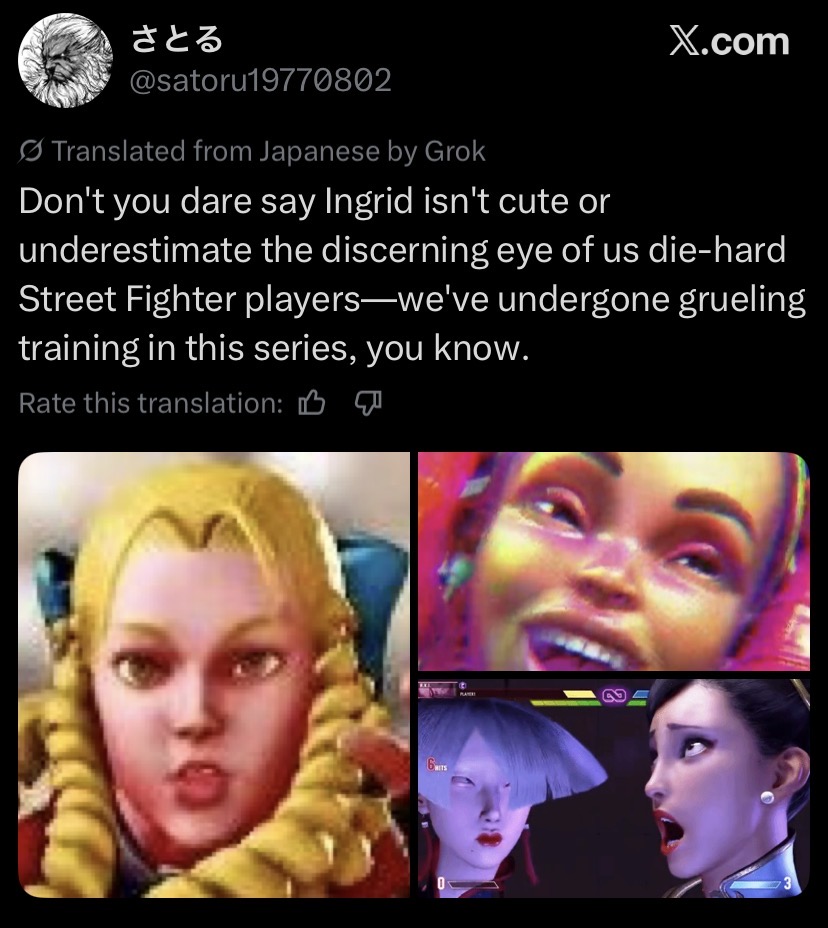 Wait there are actually people who think Ingrid looks bad in SF6? Are they brain damaged? How fucking stupid do you have to be to see her and think "that looks bad"?