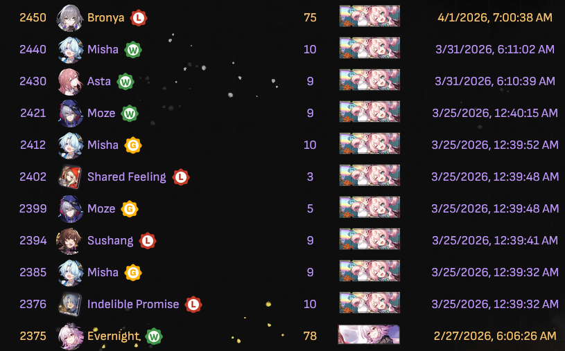 >>562565996I'm f2p (true) so my highest investments are Jade E1S1 and Evernight E1S1.Almost everyone has their sig