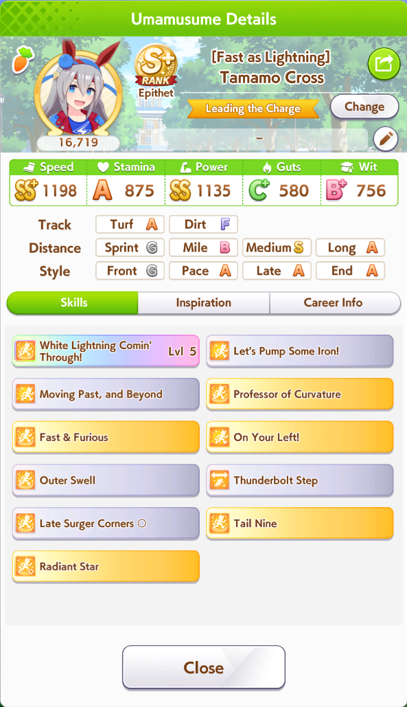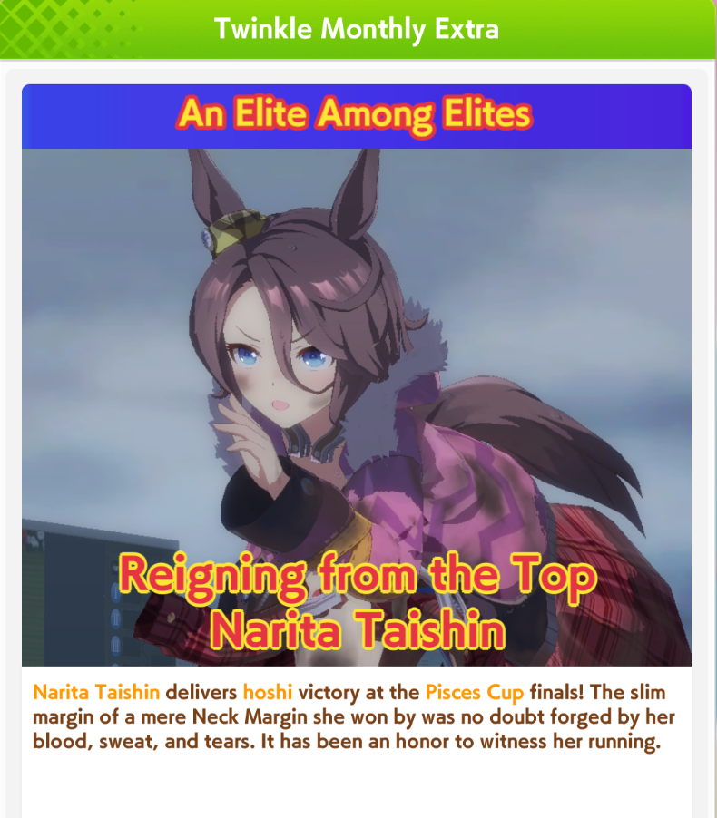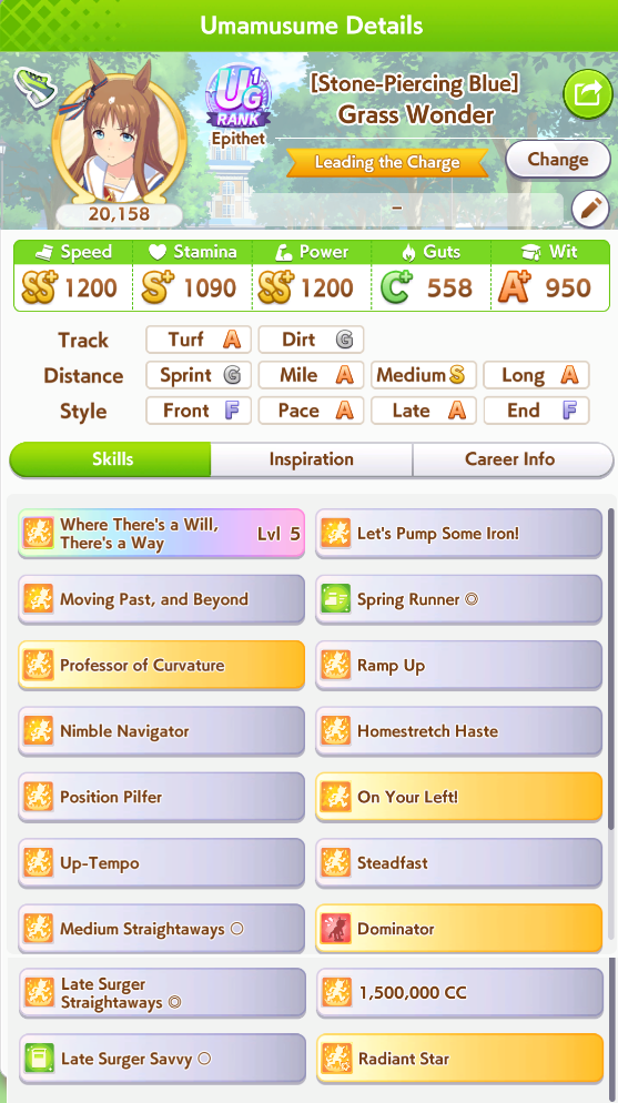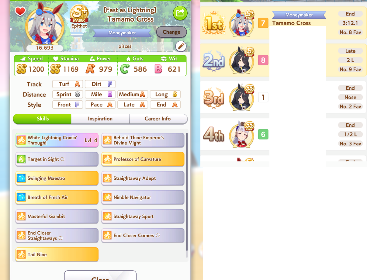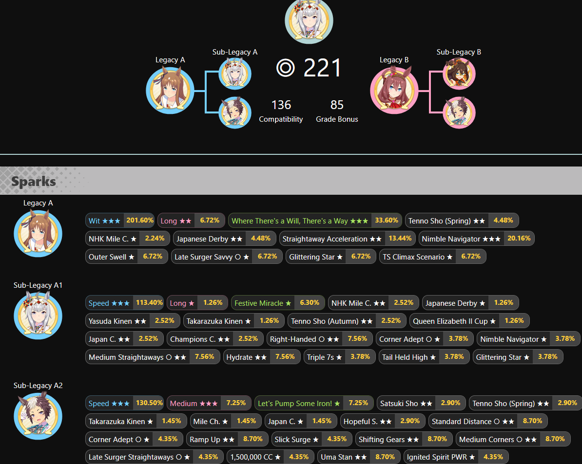 good point. I'll probably build her anyway just to try her out and see, plus I need Seiun Medium parents for my fronts, so even if she never/seldom wins, it's fine.
