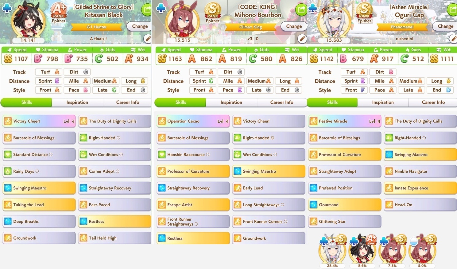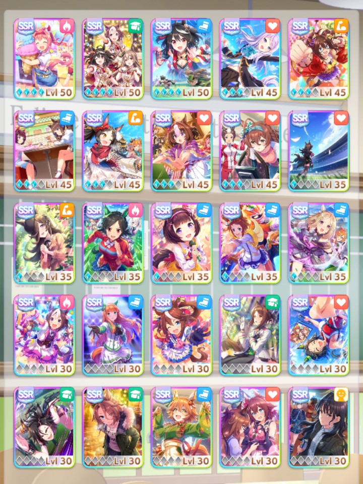 there are races other than G1s, it is very respectable to win G2s and G3s and even OP races in real life where you can't spam 40 of them in an hour. There are horses like Urara that never win at all and are endearing partly because of that, but most in that image are genuinely good race horses.