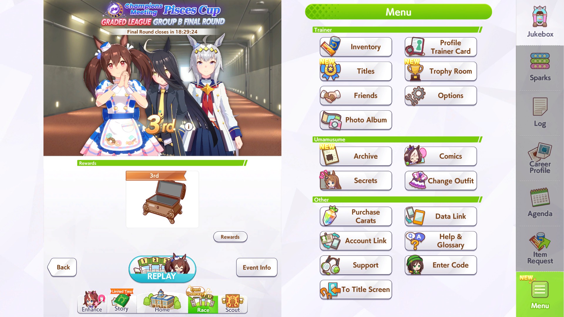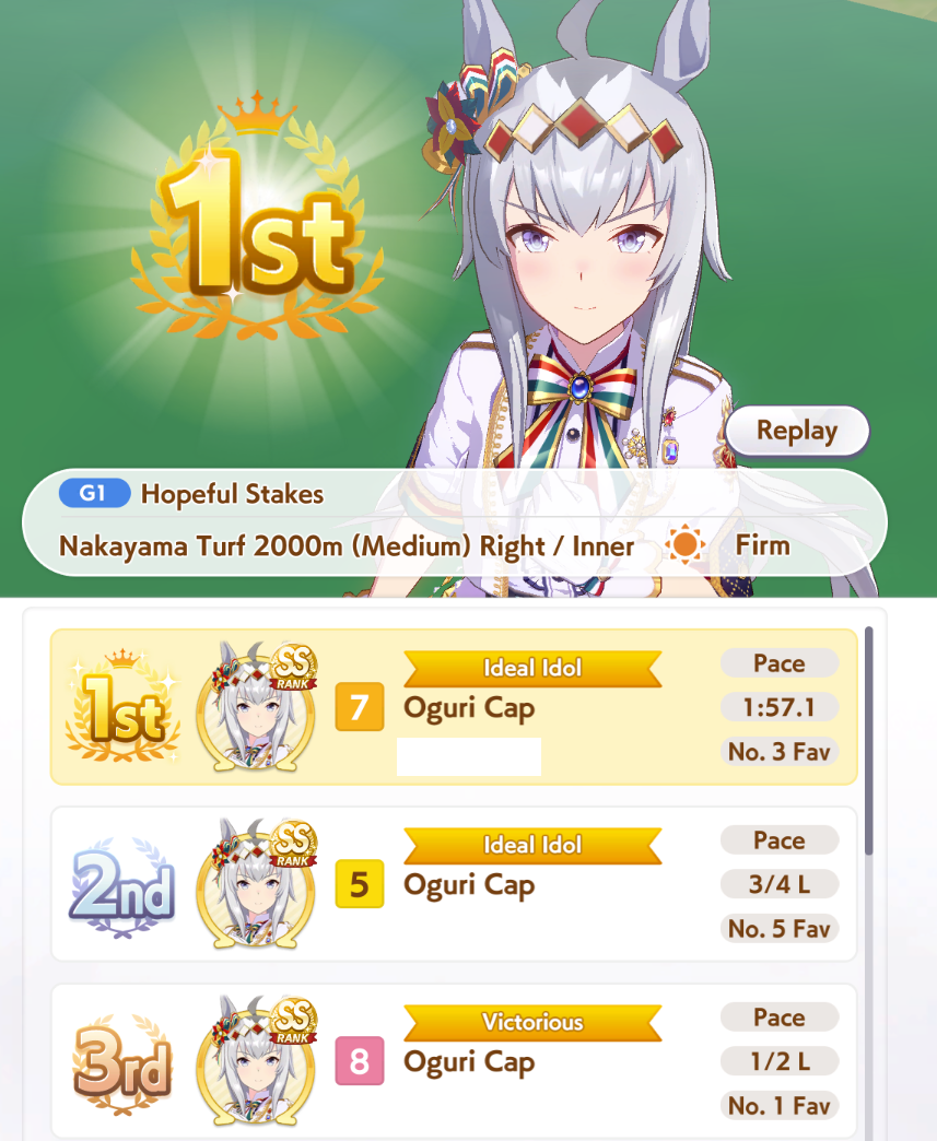 >won plat >but it wasn't as satisfying because one of my 2 other umas won instead of my oshiam i too greedy?