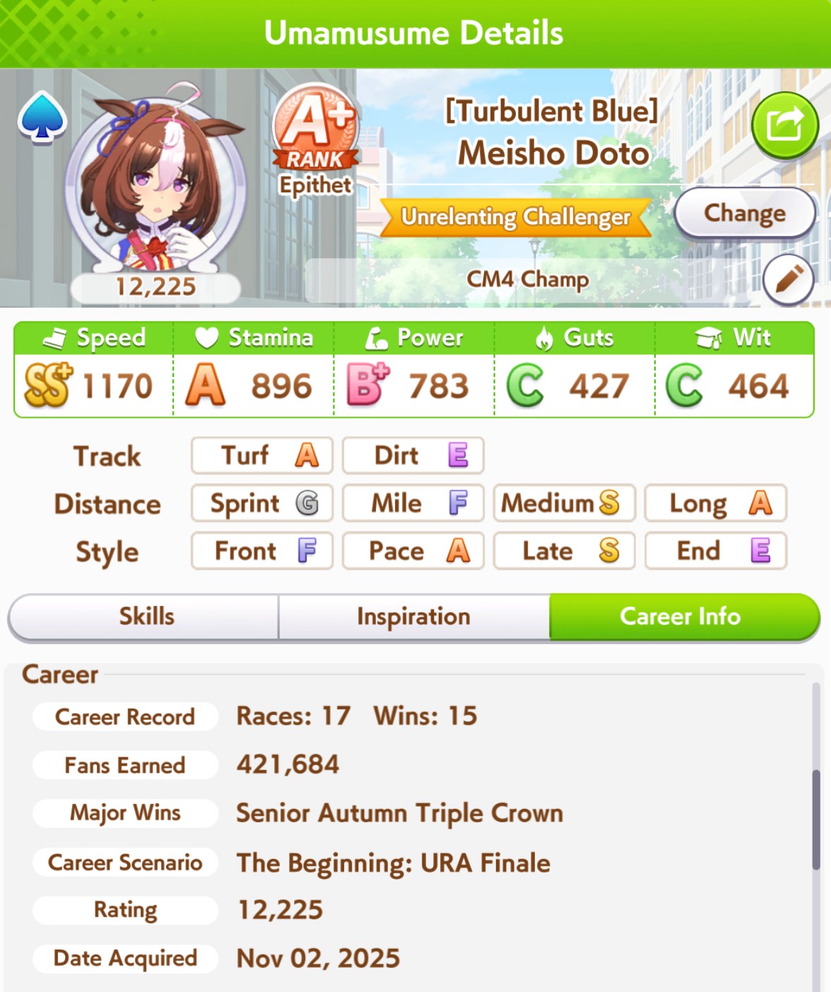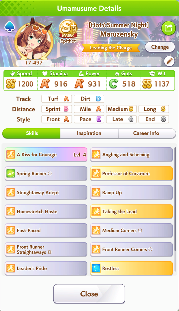 >>562591064>Turf: A>Distance: S>Style: SThe ASS dream is the real one.