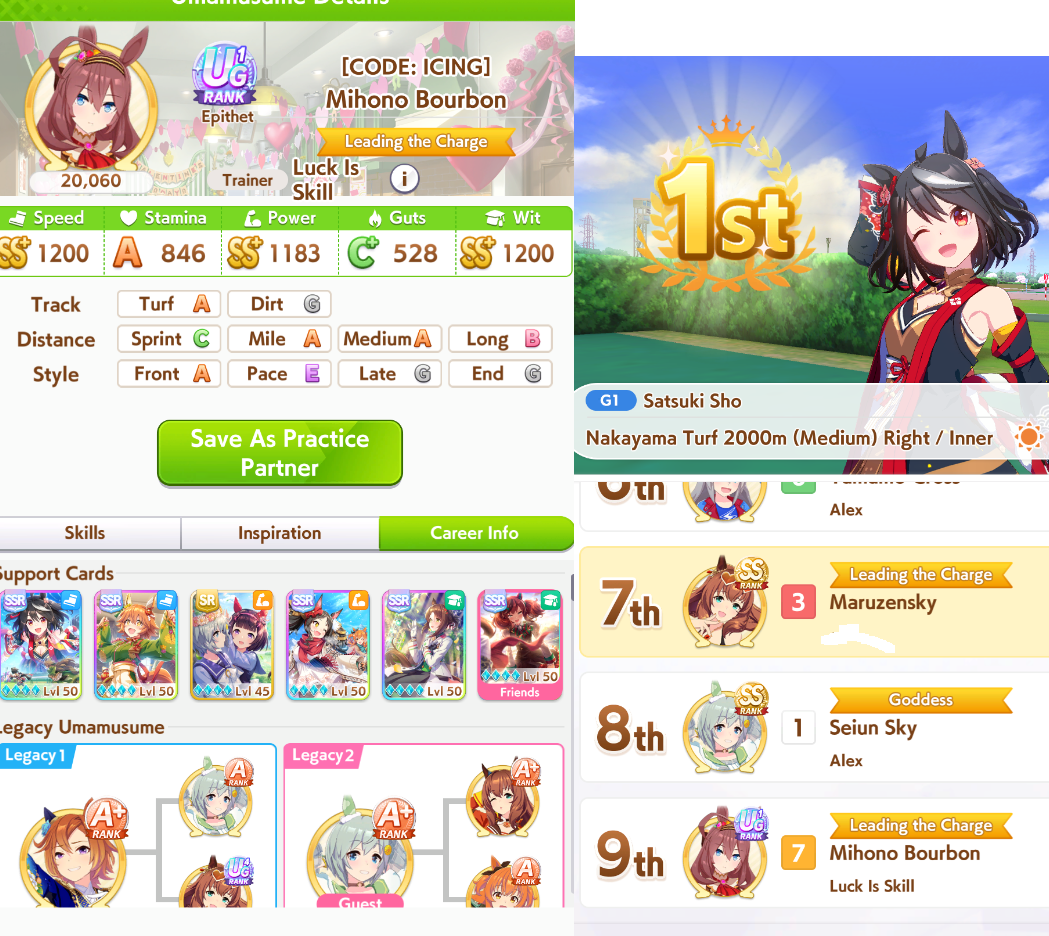 Previous: >>562567518>Global Game NewsLink your account to Cygames iDCurrent Scenario: Make A New Track aka "Trackblazer"Current Rate Up Trainee: Mejiro Bright (3*)Current Rate Up Support Cards: SSR Zenno Rob Roy (SPD), SSR Curren Chan (WIT)Current CM: Pisces Cup - Hanshin Turf 3200m>Schedule03/02 - 04/14 - Halved TP Cost & 2x Career Mode Rewards04/05 - Ballroom Seiun Sky (3*), Ballroom Fuji Kiseki (3*), Symboli Rudolf (SSR), Sirius Symboli (SSR)04/05 - Ligne Droite Story Event04/12 - Nishino Flower (3*), Daiwa Scarlet (SSR), Sweepy (SR)04/20 - Yaeno Muteki (3*), Ines Fujin (SSR), Twin Turbo (SSR)04/20 - Aries Cup - Medium/Right/Spring/Firm/200004/26 - Golshi Week Celebration04/26 - Cheerleader Nice Nature (3*), Cheerleader King Halo (3*), Bamboo Memory (SSR), Seeking the Pearl (SSR)04/26 - Tracen Cheer Squad Story Event04/30 - Ines Fujin (3*), MR. C.B. (SSR), Tokai Teio (SR)https://pages.snep.pw/uma/anni-skill-changes>JP Game NewsCurrent Rate Up: Sakura Bakushin O (3* alt), North Flight (3* alt), SSR Daring Tact, SSR Daring HeartNew Scenario "Beyond Dreams" releasedTimeline: https://uma.moe/timelineCygames Webstore: https://webstore.cygames.com/en/umamusume_en>Thread Clubshttps://rentry.co/umaglobalclublistYou must be E3 (20k points) to join a circle. Apply with /uma/ or /vg/ in your profile or post ID in the thread.>All Guides & Resourceshttps://rentry.org/uma26Game databasehttps://gametora.com/umamusume (Click the gear to switch between JP / global server info)A basic guide for newfagshttps://rentry.org/umaglobalFind networks if your region is blocked from the game or clienthttps://www.umavpn.topSeiyuu & Concertshttps://rentry.org/umstUmamusume Birthday Calendarhttps://ウマ娘.攻略.tools/events/birthdayUma Texthttps://umareader.idsmile.xyzCustom Stickershttps://schizo.farm/resources/stickers