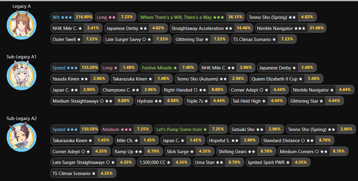 >>562590921Just look for mixed parents, anon. Any mix of stamina/power is fine, hell even guts/wit parent is usable.