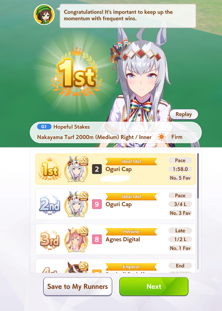 Convince me not to do a late surger XOguri for the superior late race speed. She'll proc her ult midrace but she'll have higher chance to NSM off other paceslop xogs + pump/beyond