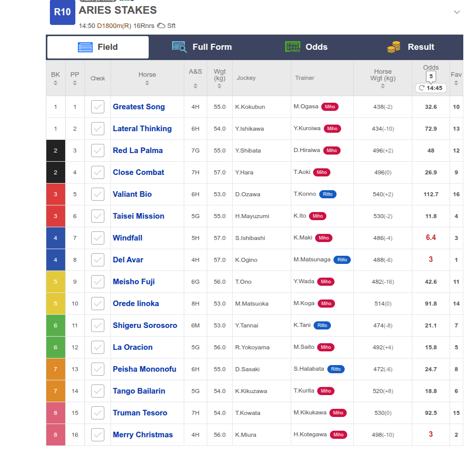 What are the real odds on Meisho Tabaru winning? I want to bet on him