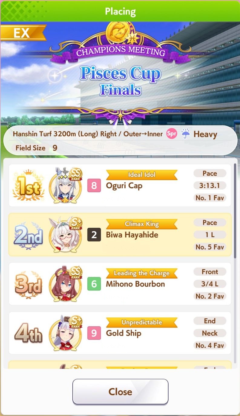 >>562590643Considering how much the odds were stacked against her this CM and how bad my winrate overall was (round 2 was brutal) I'm pretty proud that she managed to do as well as she did here!>>562590538I love watching the races that other anons post so I always like to throw my hat in the ring when something interesting happens, glad to see that you're enjoying them