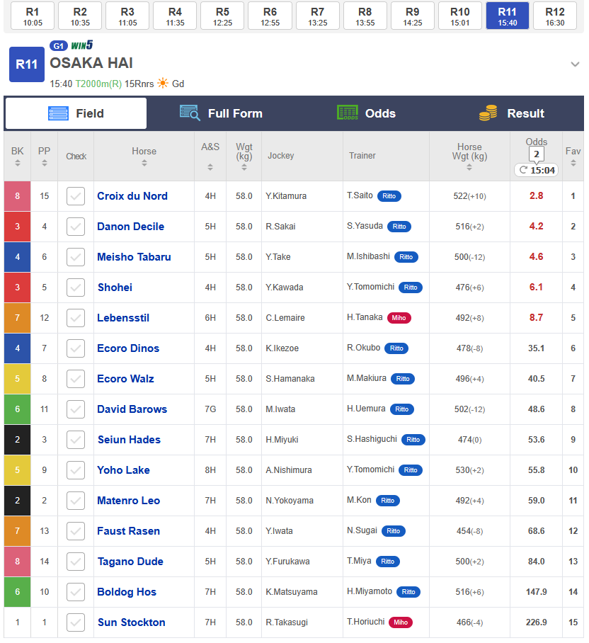 Osaka Hai starts in 35 minutes