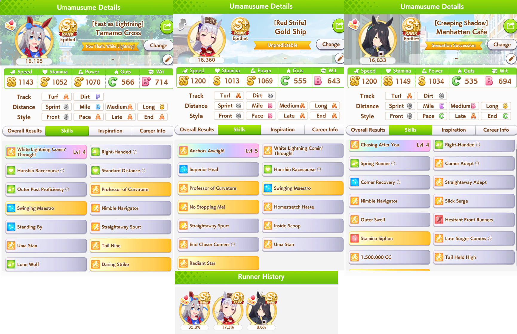 >>562590687You don't need that much stamina for next CM. Hell I've even done 0 stamina parents though this means skipping triple crown/spring tenno route.