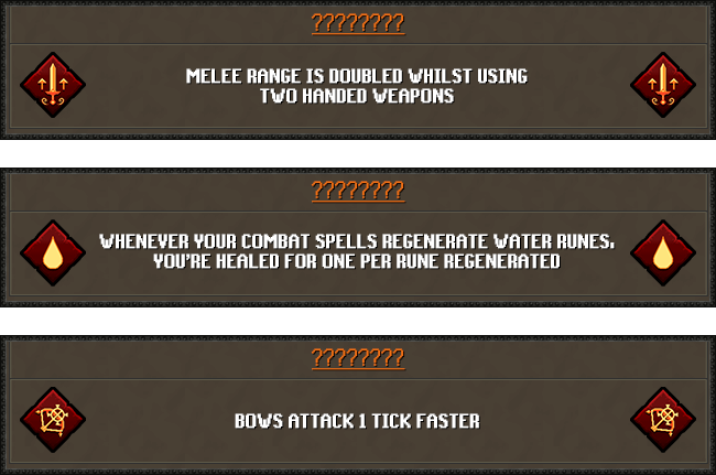 >>562626519retarded>"Whenever your combat spells regenerate water runes, you're healed for one per rune regenerated.">"Bows attack one tick faster."still dont know the top one